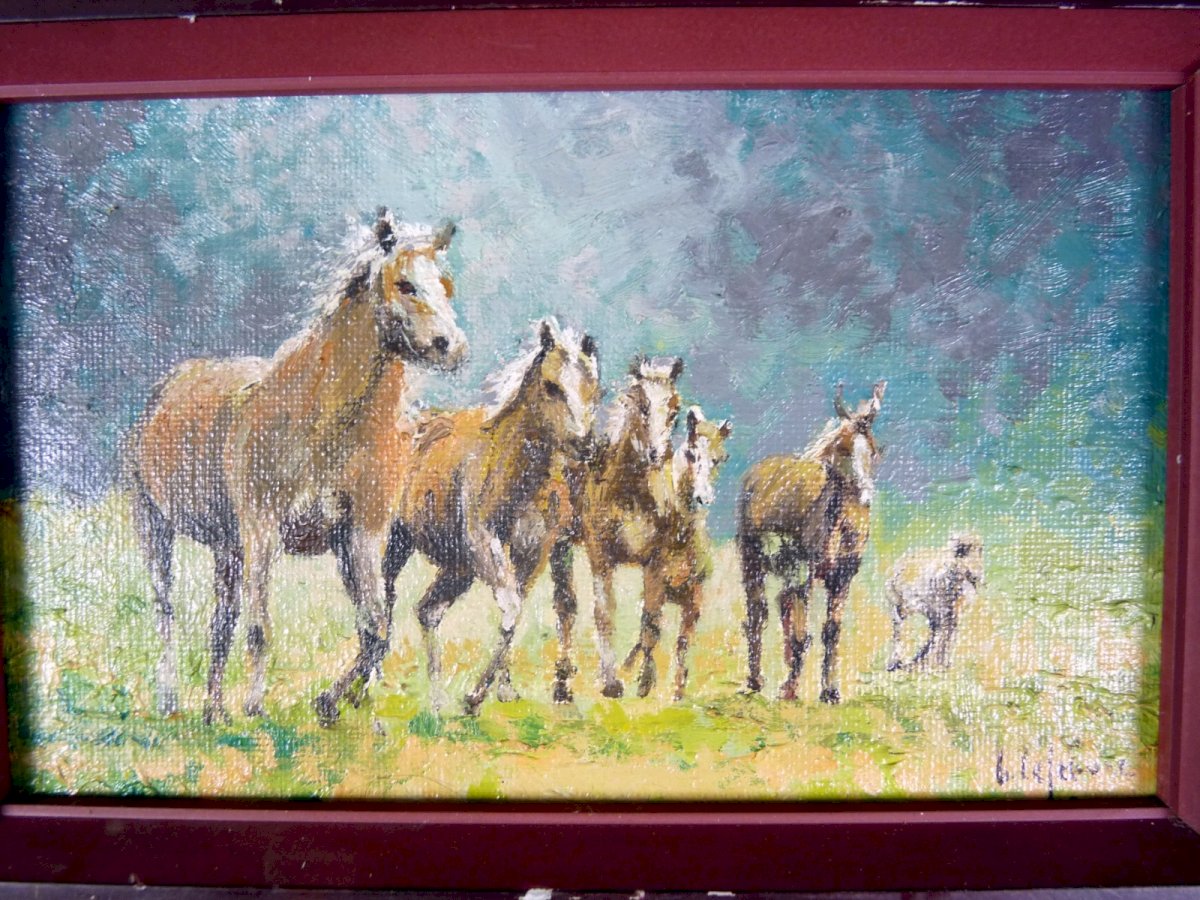 HST HORSE TROUPEAU Signed G. Lefebvre gilded wooden frame. Very good overall condition, see photos. Painting dimensions: 22 x 14 cm Frame dimensions: 33 x 24.5 cm. Type: Oil Style: 1980 Genre: Expressionism Features: Signed Theme: Animals Artist: G. Lefebvre
