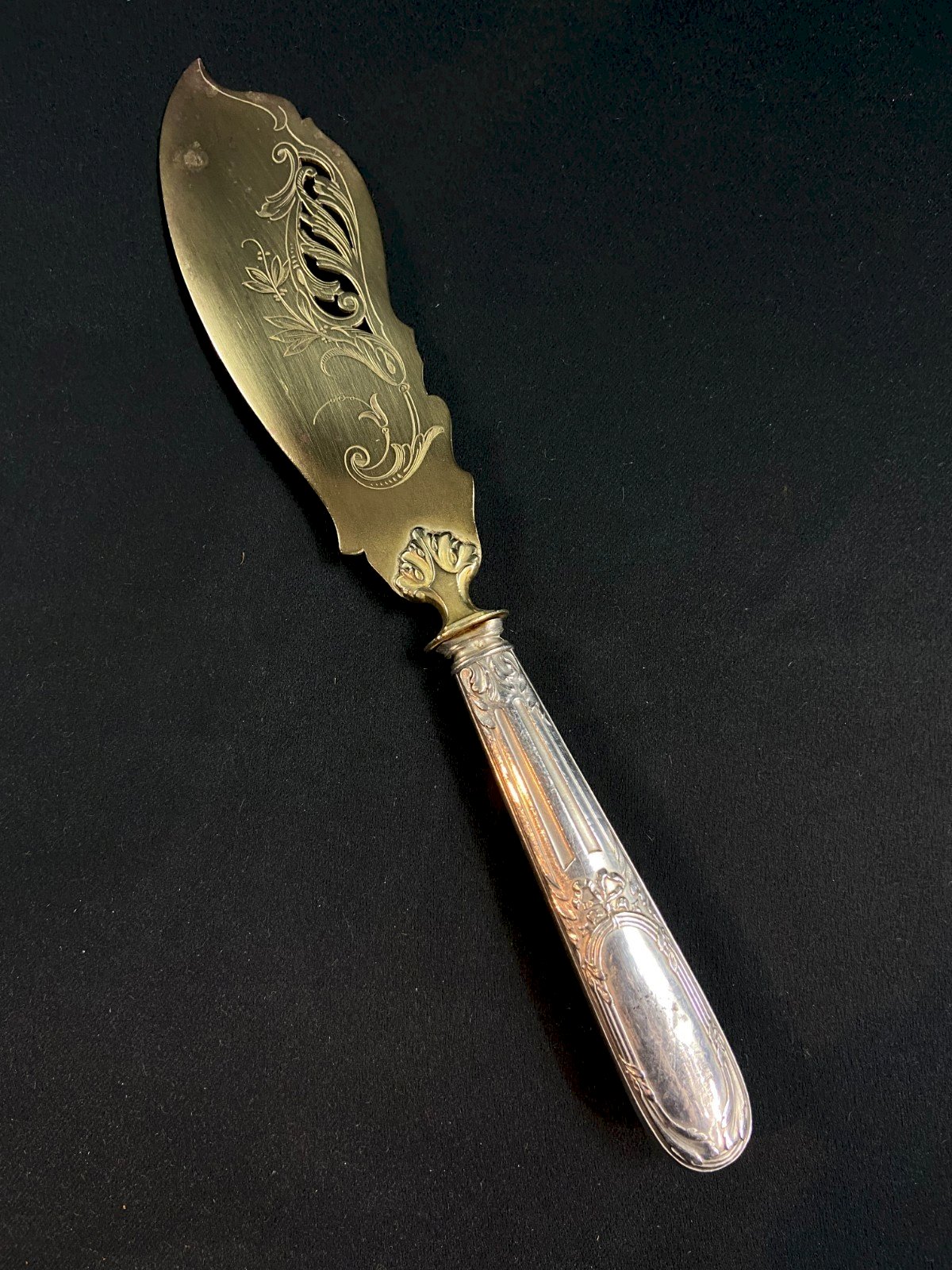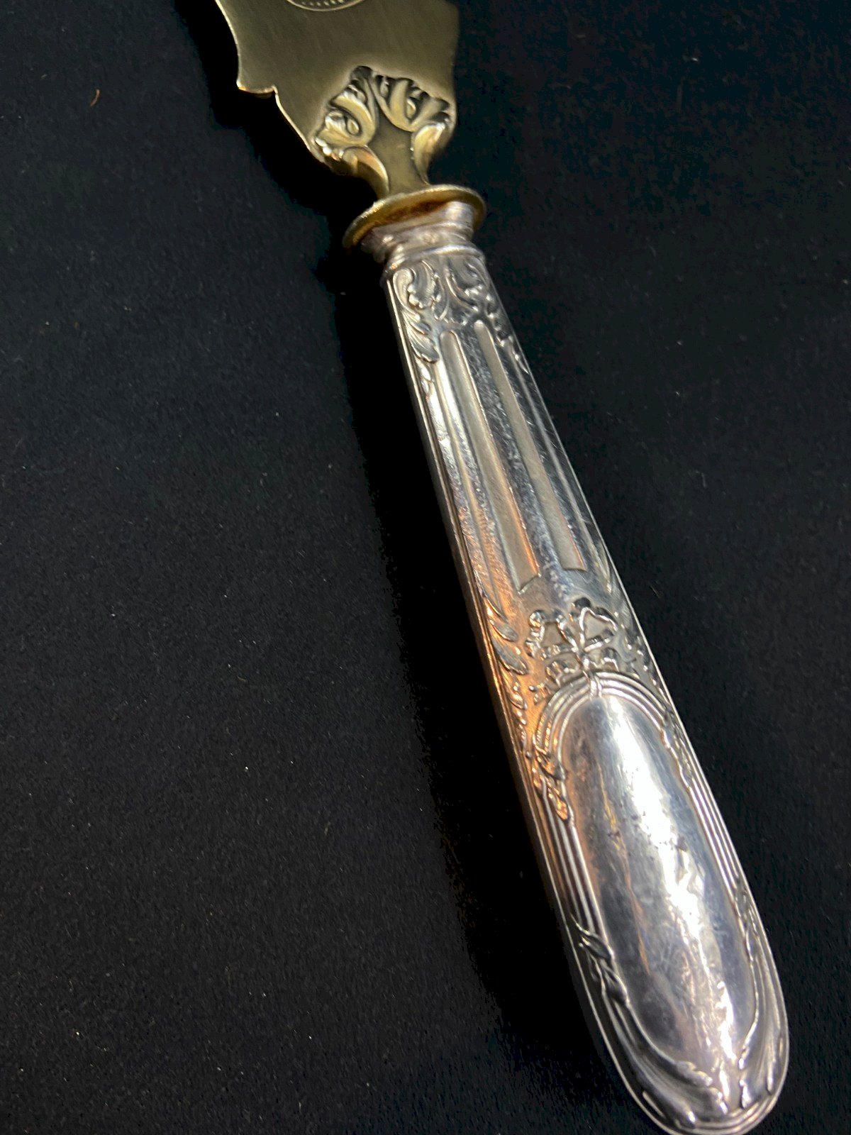 Ice shovel in Louis XV style, handle in silver late 19th century Max dimensions: 26.7 x 4.7 cm Weight: 106 grams I note the presence of small deformations as well as minor surface wear on the gilded part. Ultra-secure shipping worldwide - Pickup of orders possible by appointment, 7 rue Notre-Dame 18000 Bourges. - Possibility of grouping within the same package: please contact me beforehand so I can calculate your optimized shipping costs. Authenticity: Original Type: Table art, Kitchen Origin: France Country of origin: France Sub-type: Ladle, Shovel Material: Solid silver Style: Louis XV, Neoclassical
