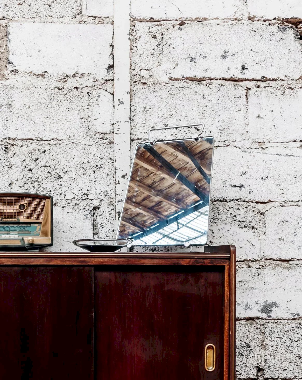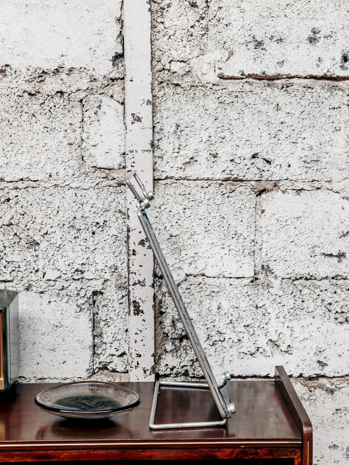 Add a touch of modern elegance to your space with this leaning full-length mirror in chrome metal. It stands out with its adjustable tilt, allowing you to customize your viewing angle according to your needs. Its sleek and contemporary design fits perfectly in a dressing corner or a bedroom, combining style and functionality. Length: 29 cm Height: 45 cm Depth: 16 cm Condition: Used: An item that has been used. Item showing some superficial signs of wear... Used: An item that has been used. Item showing some superficial signs of wear, fully operational and working correctly. It may be a demonstration model or an item returned to the store after a short period of use, with possible imperfections. Brand: Debongout Type: Thrifted Product Material: Glass, Chrome Style: Contemporary