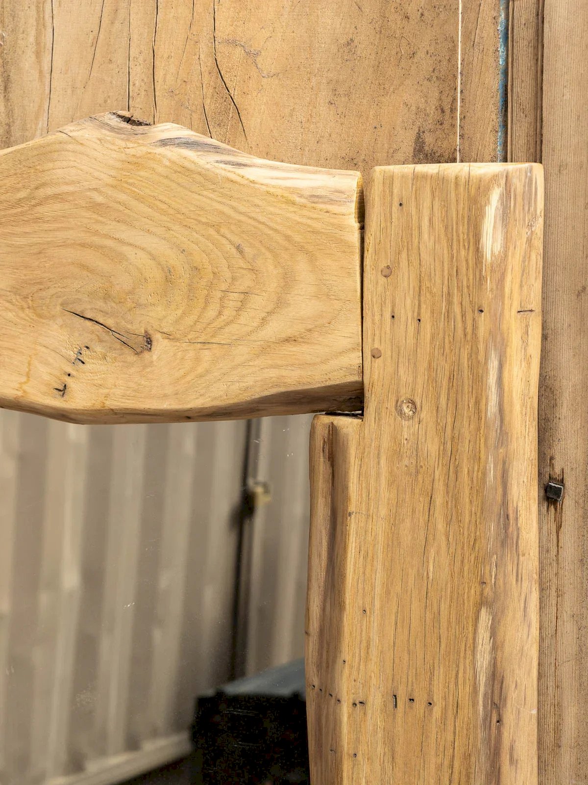 Bring a touch of elegance to your interior with the large brutalist mirror, featuring an oak frame. Its clean lines and natural wood create a warm and authentic atmosphere while reflecting light to visually enlarge the space. Ideal for your living room, bedroom, or hallway, this mirror pairs perfectly with all decor styles. Its timeless design makes it a must-have to enhance your home. Frame Width: 115 cm Height: 125.5 cm Mirror Width: 82.5 cm Height: 84 cm Condition: Used: Item that has been used. Item showing some signs of superficial wear... Used: Item that has been used. Item showing some signs of superficial wear, fully operational and functioning correctly. It may be a demonstration model or a returned item after a short period of use. Any potential imperfections. Brand: Debongout Type: Vintage product Material: Oak Style: Contemporary