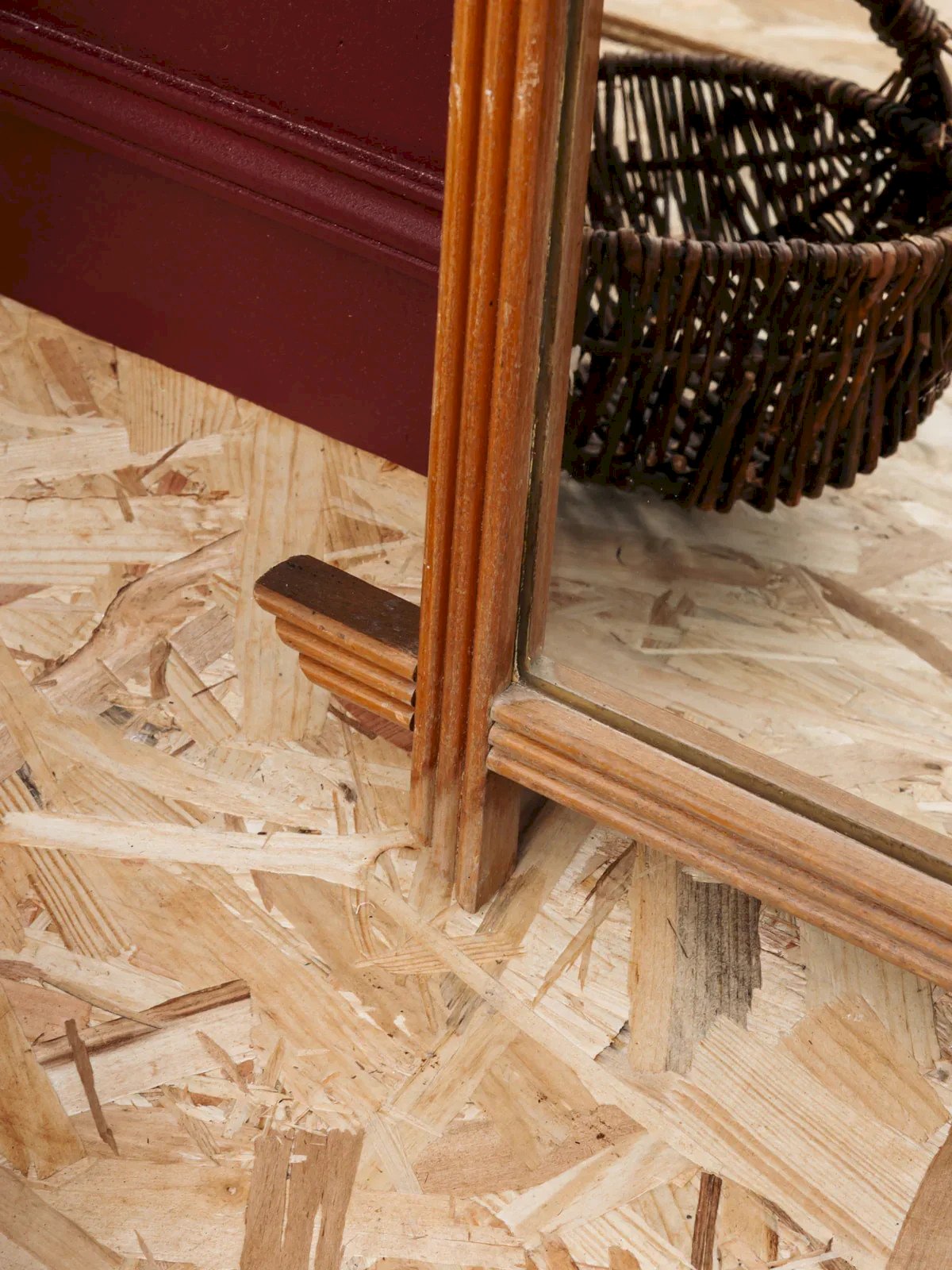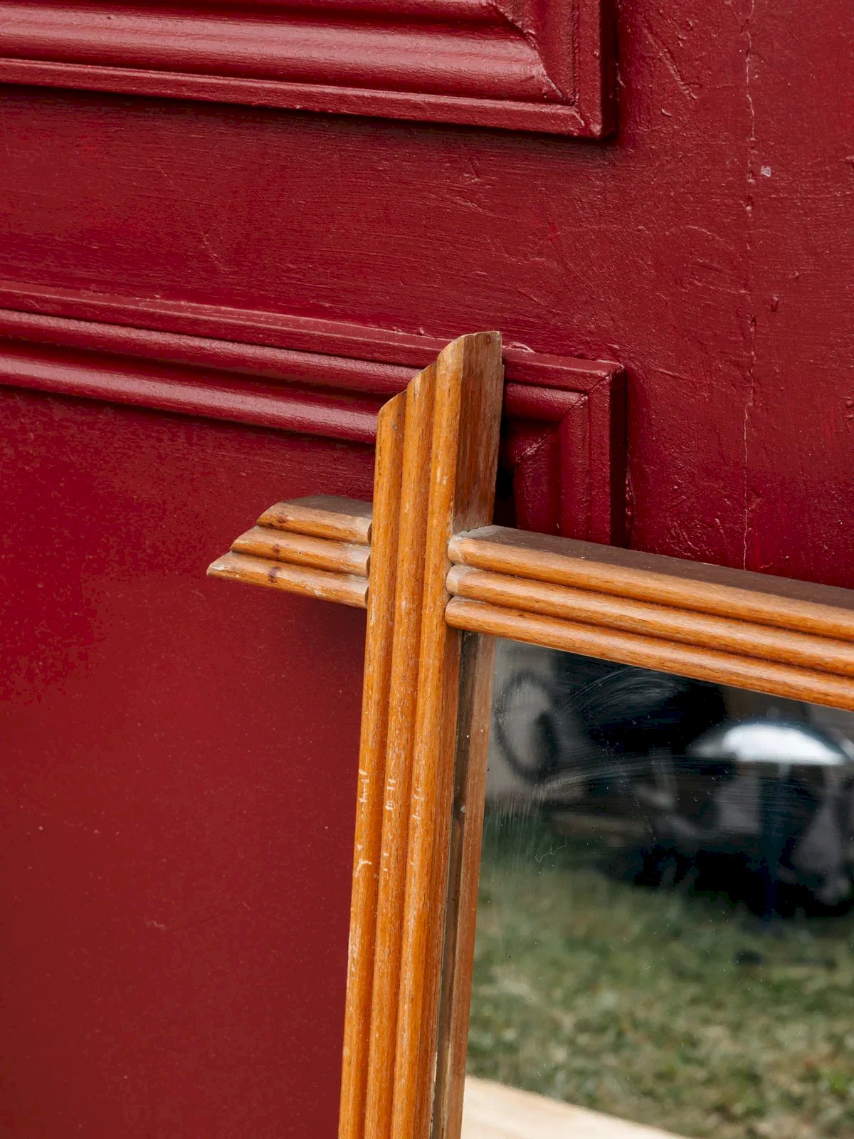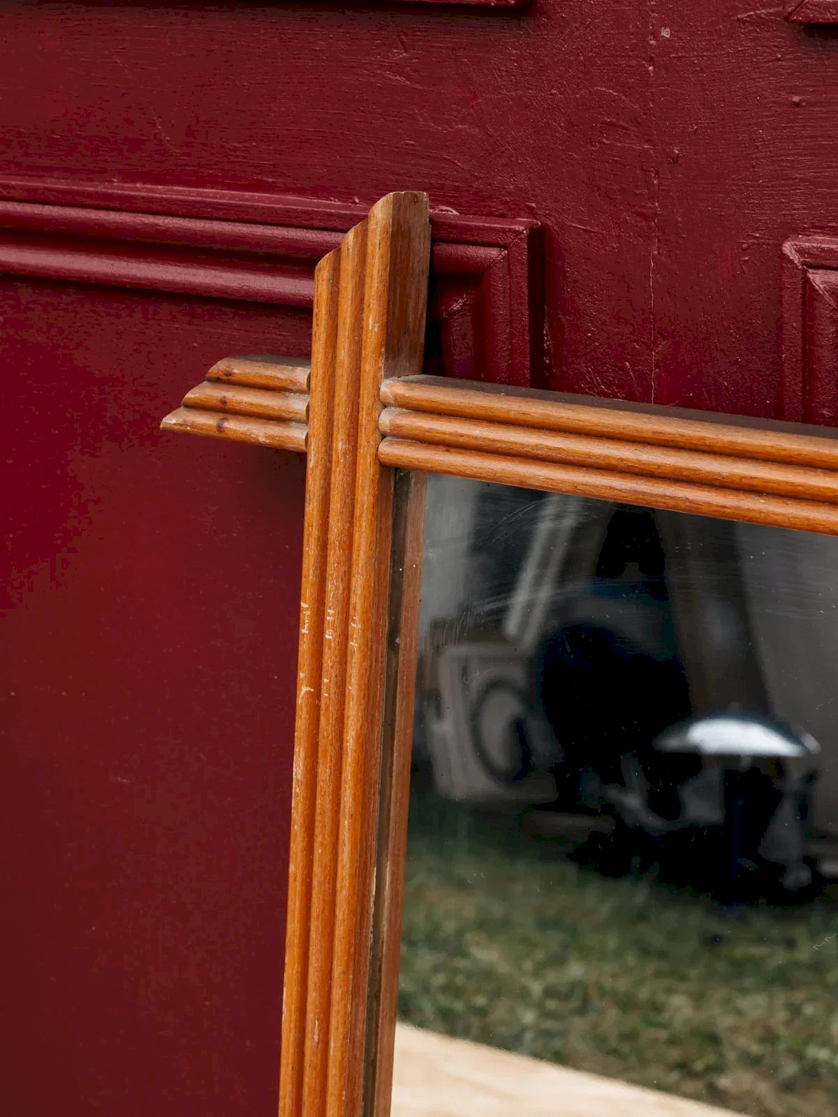 Discover this timeless wooden mirror, enhanced by a delicate groove that gives it a unique character. Although a few signs of wear attest to its history, the authenticity of this mirror is preserved, with a mirror that has very few spots, making it ideal for adding a vintage touch to your interior. Practical, it comes with a cord for easy and quick hanging, making this elegant accessory a must-have for your decor. Length: 52 cm Width: 3.5 cm Height: 63 cm Condition: Used: Item has been used. Item shows some superficial signs of wear... Used: Item has been used. Item shows some superficial signs of wear, fully operational and functioning correctly. It may be a demonstration model or an item returned to the store after a short period of use. any potential imperfections. Brand: Debongout Type: Thrifted product Material: Wood Style: Contemporary