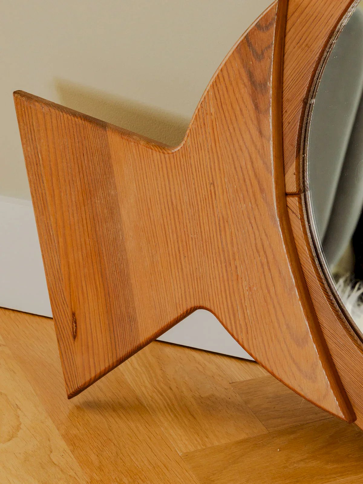 Discover this charming wooden mirror in the shape of a large fish, a unique decorative item that brings a marine touch to your interior. With its authentic patina and a few rare signs of use, it tells a story and reflects the love of time passing. Although the hanging systems on the back are broken, you can easily replace them and hang it according to your wishes, whether horizontally or vertically. This mirror is an ideal piece for lovers of the sea and vintage style. Width: 81 cm Height: 55 cm Diameter: 45 cm Condition: Used: An item that has been used. The item shows some superficial signs of wear... Used: An item that has been used. The item shows some superficial signs of wear, fully operational and functioning correctly. It may be a demonstration model or an item returned to the store after a short period of use, with possible imperfections. Brand: Debongout Type: Vintage product Material: Wood, Glass Style: Contemporary