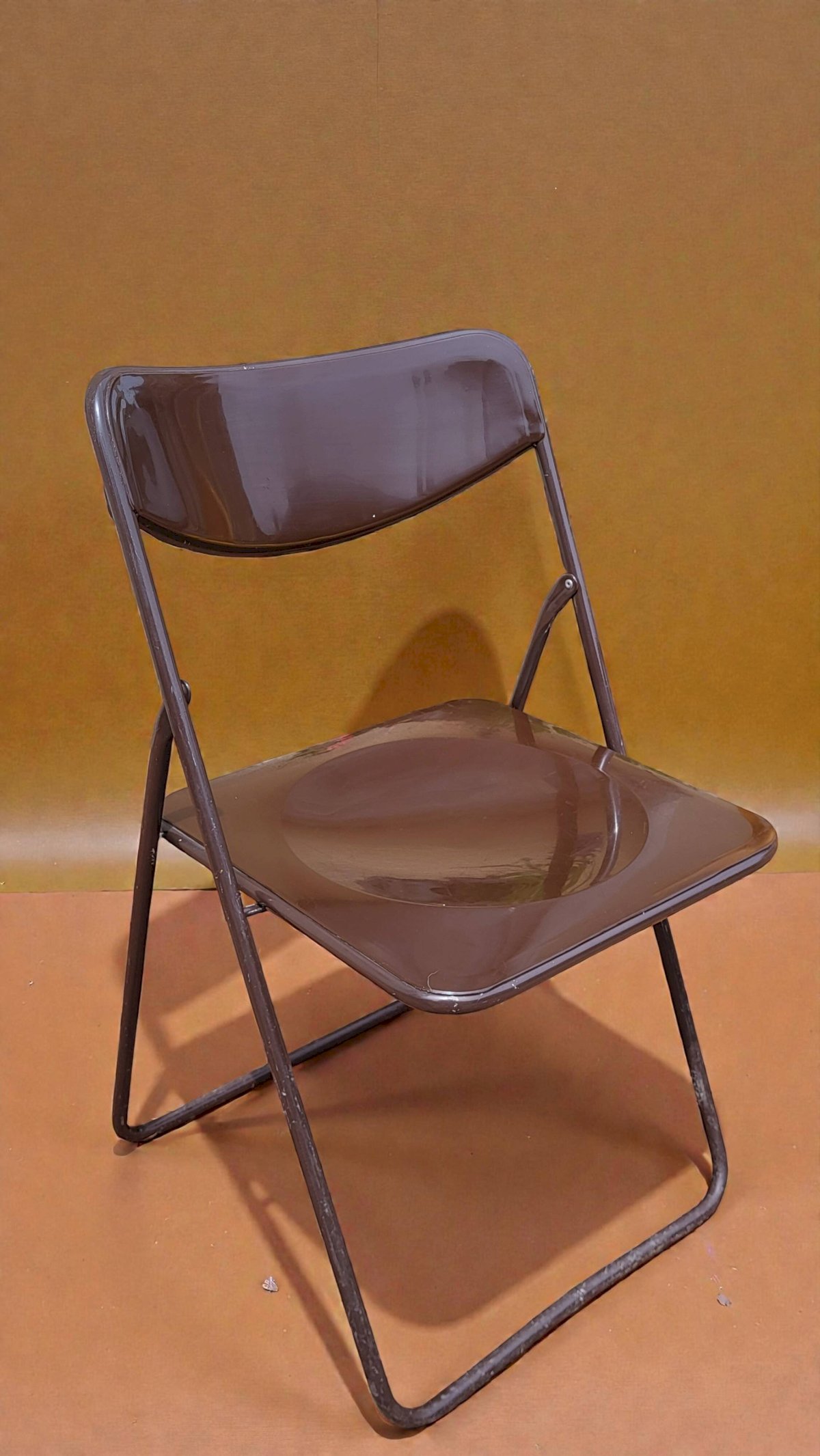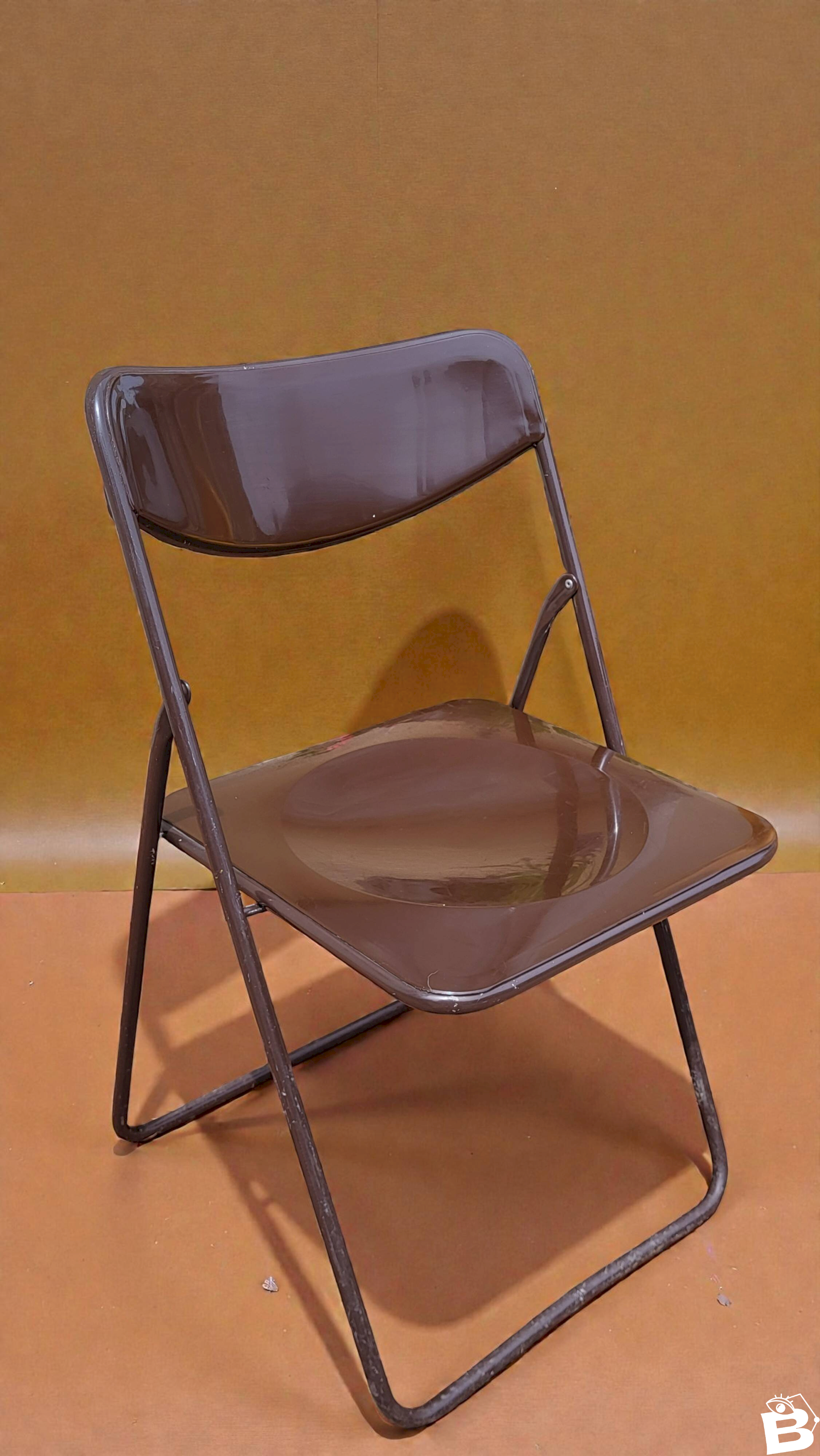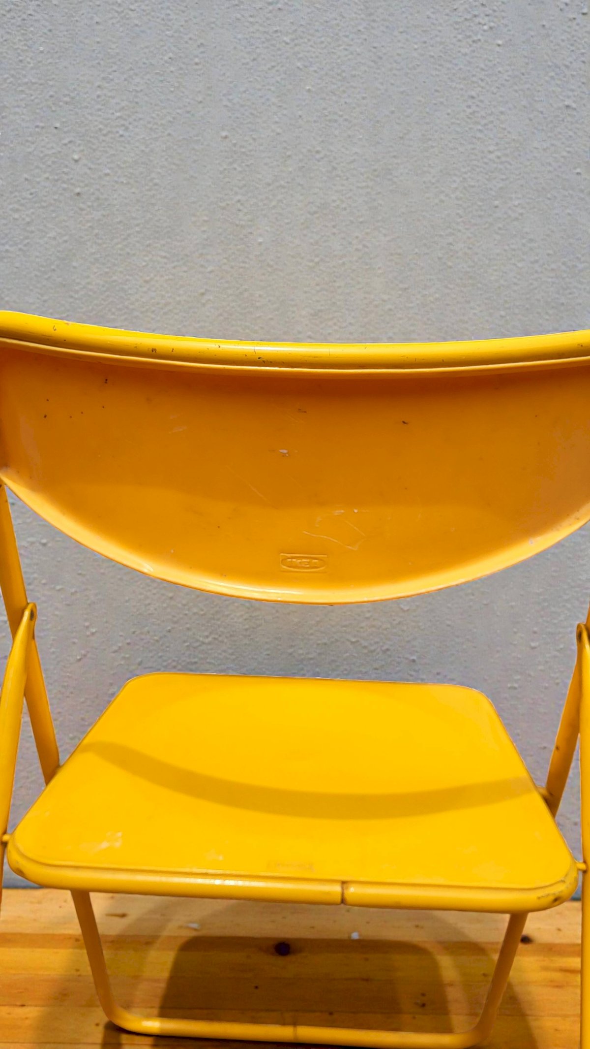 Pair of folding chairs from the 80s by Ted Net for Niels Gammelgaard / vintage IKEA. Yellow and brown lacquered tubular structure / plastic seat and backrest. Signs of use and age. (micro scratches and some paint chips) Dimensions: h76 x w45 x d46. L: 10 w: 10 H: 10