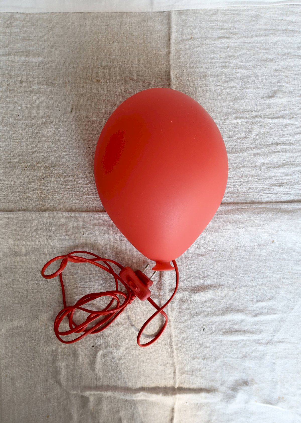 IKEA wall lamp "DRÖMMINGE" in the shape of a balloon, bright red color, playful 90's design. Vintage condition with minor signs of use; one side screw missing (see photos). Dimensions: 30cm X 21cm. L: 30 W: 10 H: 20.