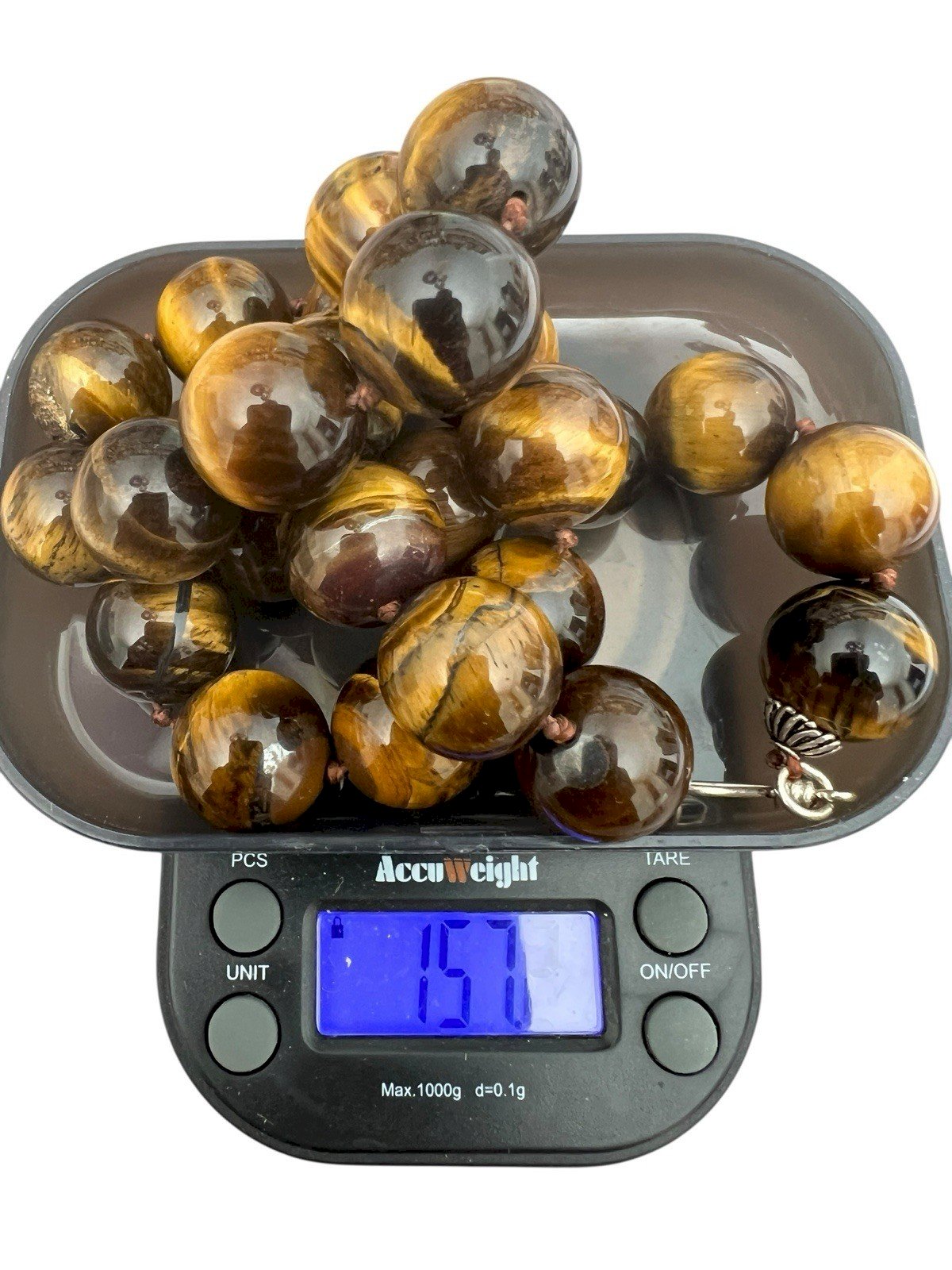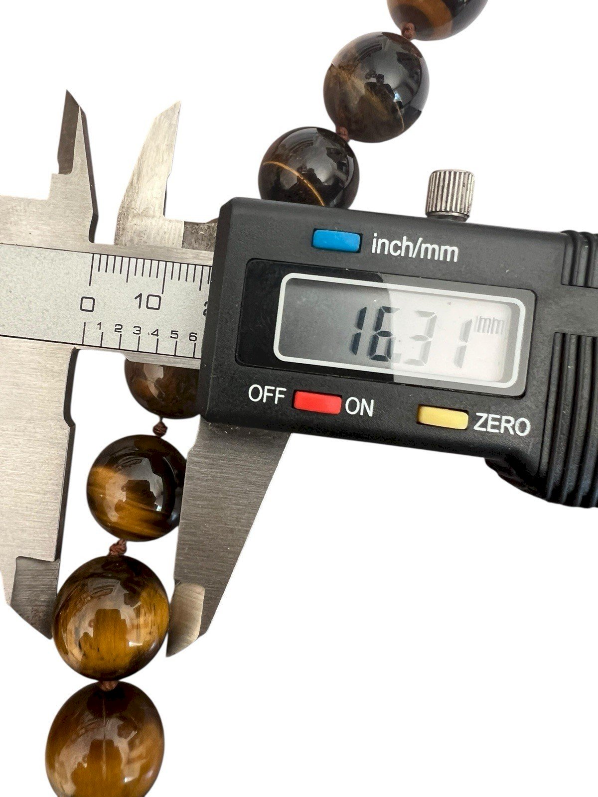 Important Tiger Eye Large Bead Necklace Silver Knot Vintage Mounting. The hook clasp is made of solid silver, tested with appropriate acid. The diameter of the beads is approximately 16.31 mm. The necklace mount is of high quality as it is knotted. Necklace length approximately 50 cm, weight approximately 157 g, in good condition. Tiger Eye: A Shield of Confidence and Protection. Tiger Eye is a fascinating stone, recognizable by its shimmering reflections. In lithotherapy, it acts as a true protective shield against negative energies and jealousy. It brings self-confidence, courage, and mental clarity, helping to overcome fears and make informed decisions. Physically, it is renowned for its benefits on digestion and vitality. It is a valuable ally for regaining balance and serenity in daily life. Condition: Used: Item has been worn. ...Used: Item has been worn. any imperfections. Theme: Beads, Dominant stone: Tiger Eye, Type: Stone Necklace, Dominant color: Brown, Material: Tiger Eye, Metal: Sterling Silver, Length: 46-50 cm.
