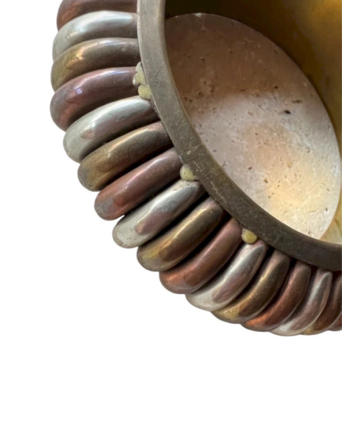 Vintage Yellow Bracelet circa 1980 Three Color Hippie. Important three-color metal bracelet, hippie era. Diameter approximately 7 cm, which is about 22 cm in circumference. Height of the bracelet, about 2 cm. Some traces of resin, see photo. Condition: Pre-owned: Item has been worn. ...Pre-owned: Item has been worn. Possible imperfections. Style: Bangle Dominant color: Yellow Metal: Copper Brand: Vintage