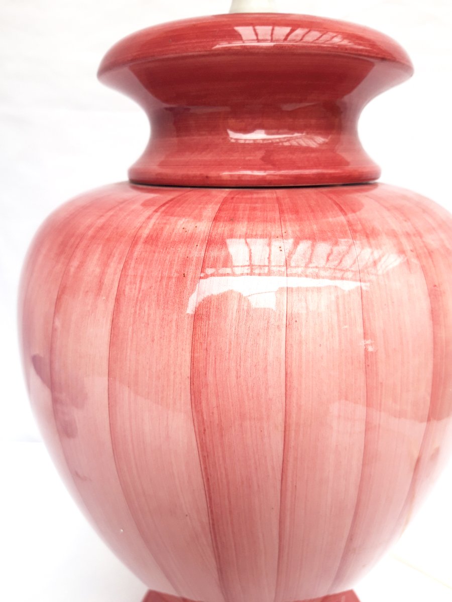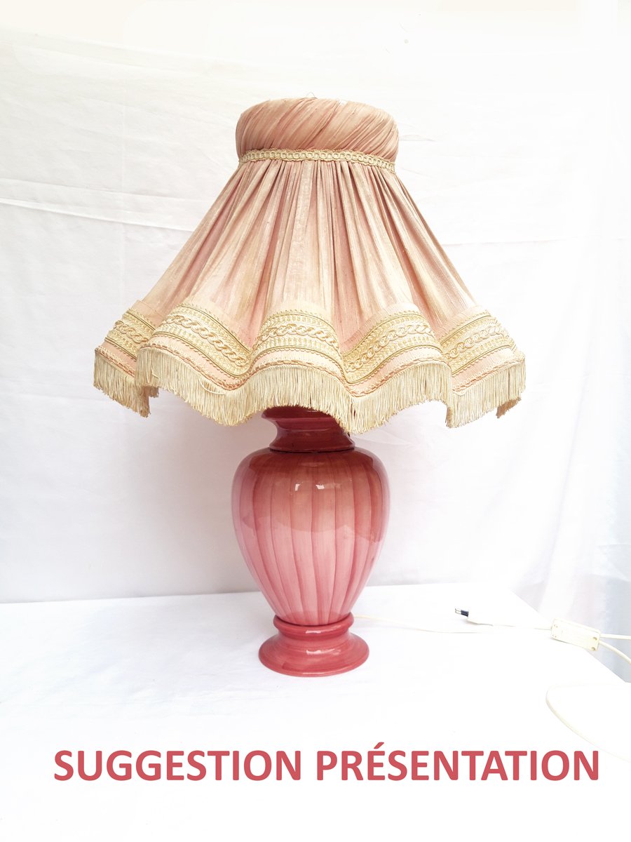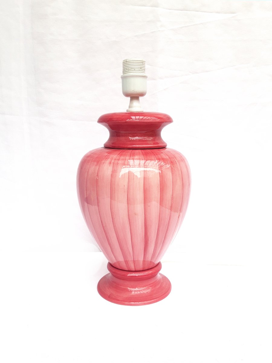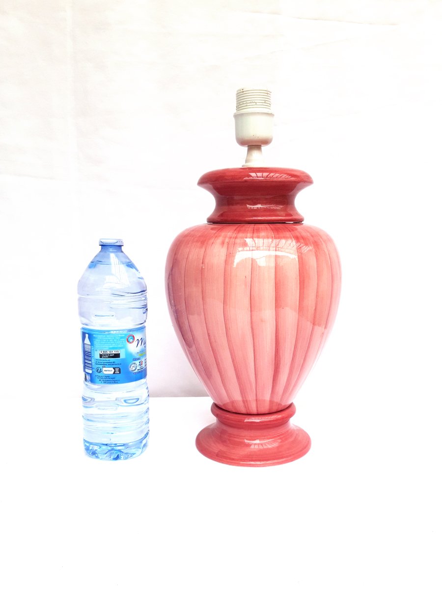 19th century lamp base in Gien earthenware with Italian Renaissance decor on a black background
