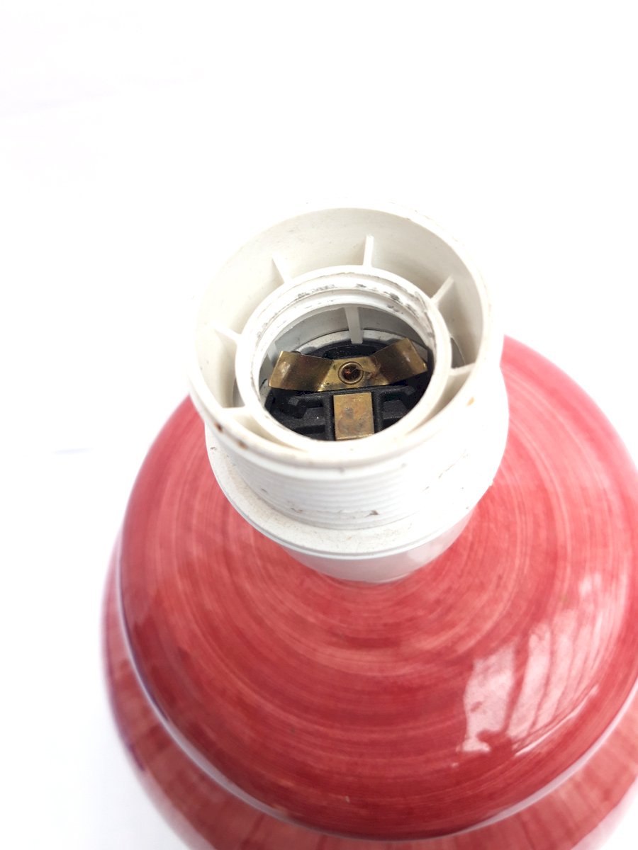 Vintage beige ceramic oil lamp base - Brown floral pattern - Neck