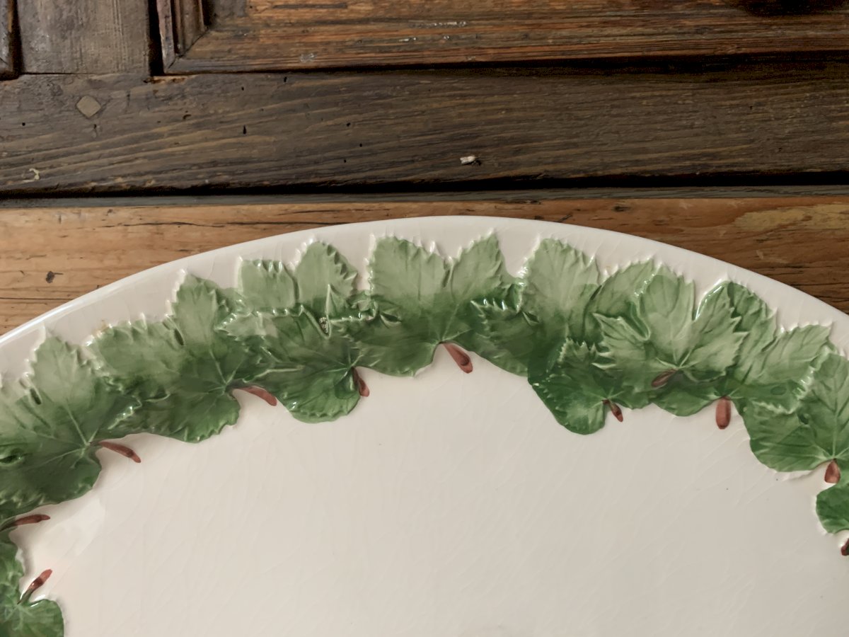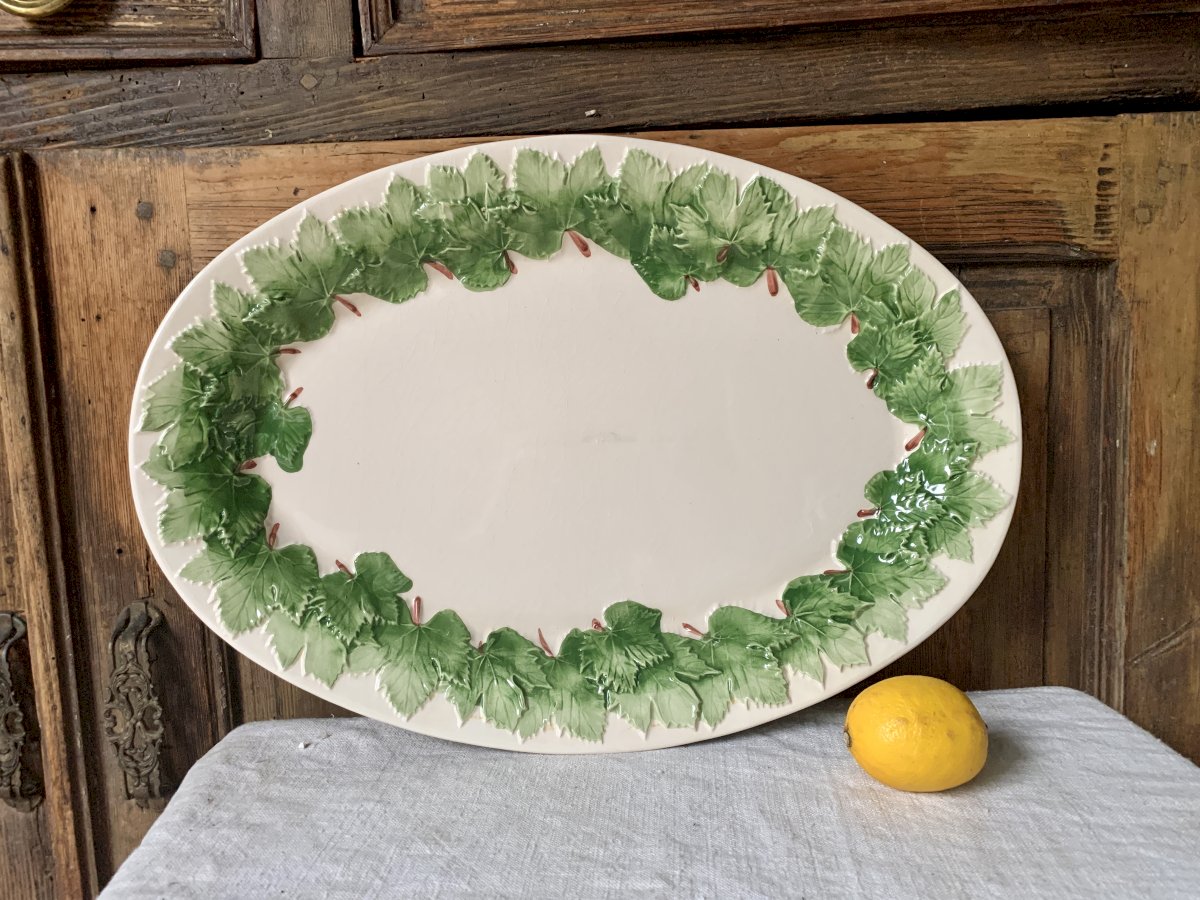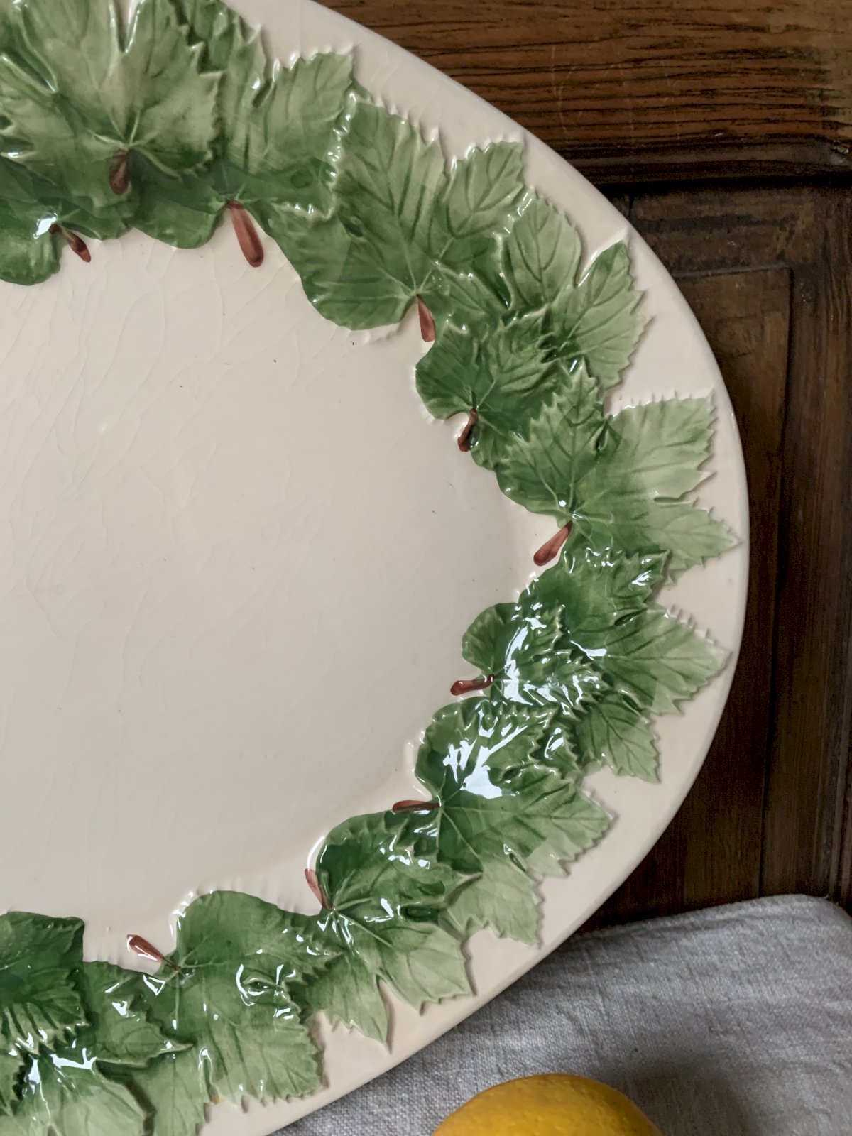 Impressive serving platter 47cm, oval shape, decoration of leaves in slip. In very good overall condition, with a hairline on the reverse. Perfect for a festive table.