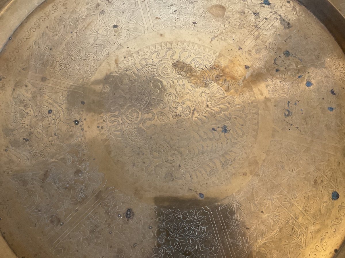 Indochinese tea table, Chinese 19th century, dragon decoration... Diameter: 76 cm Height: 63 cm Authenticity: Original Type: tea table Origin: Asia Subtype: Tray Material: Bronze Style: Chinese