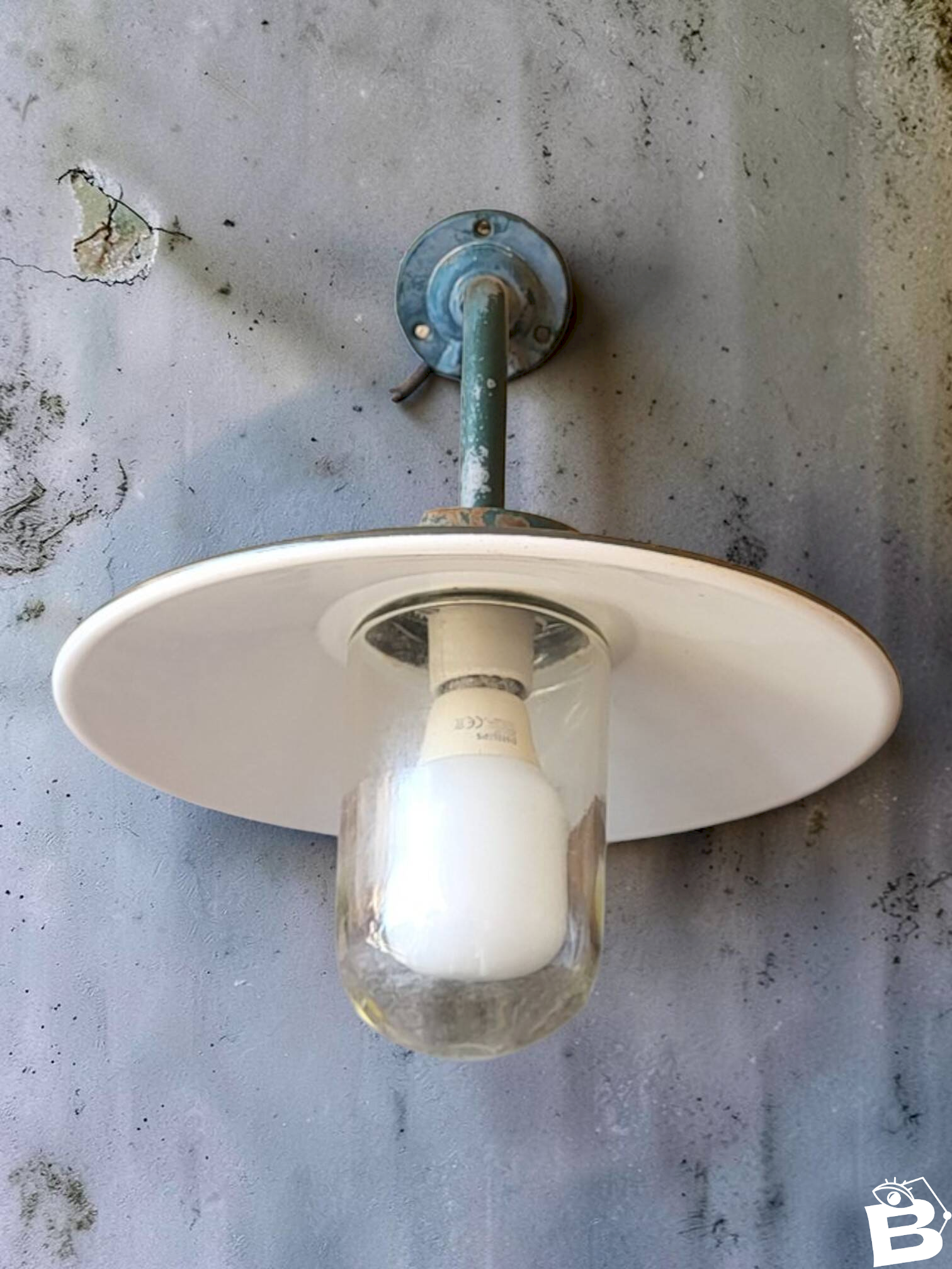 INDUSTRIAL WALL LIGHT CAST IRON SUPPORT SHADE IN WHITE ENAMEL SHEET