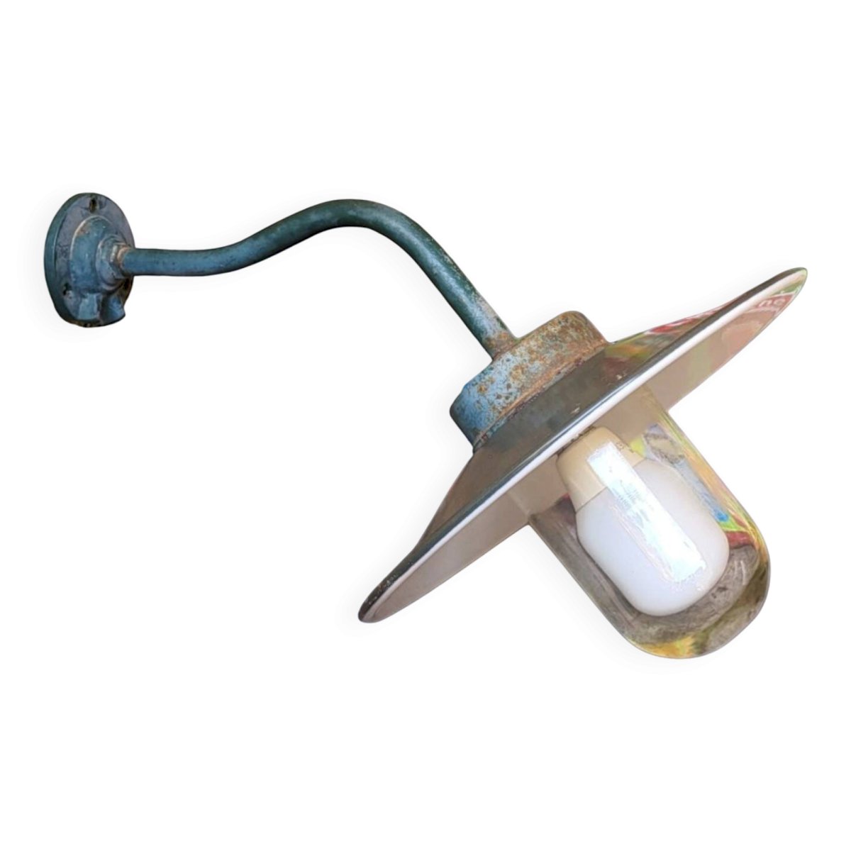 Outdoor industrial lamp Swan Neck. Shade diameter 30 cm. Depth 45 cm. Oxidation.