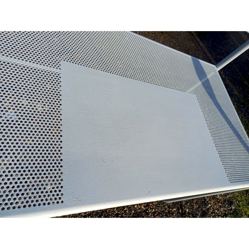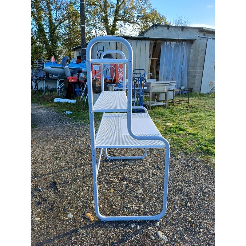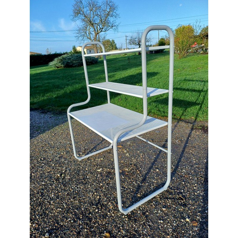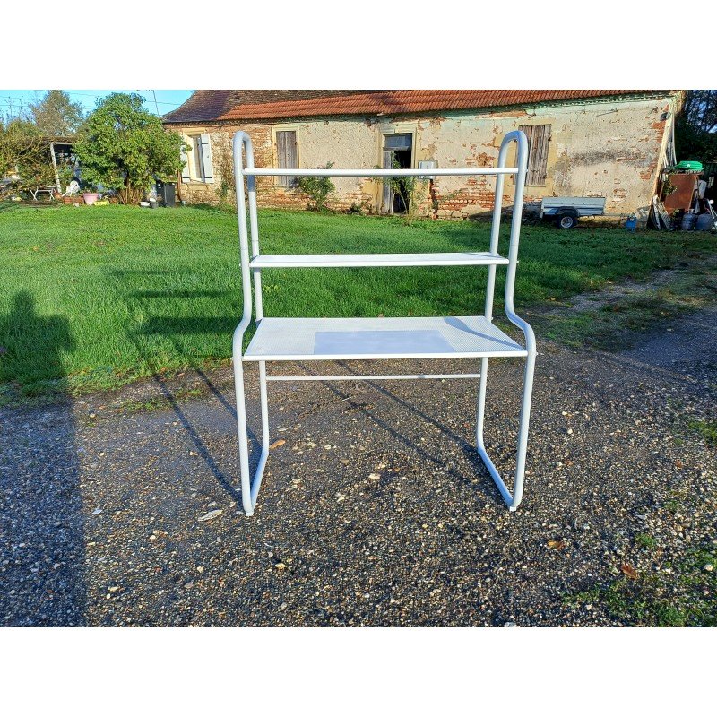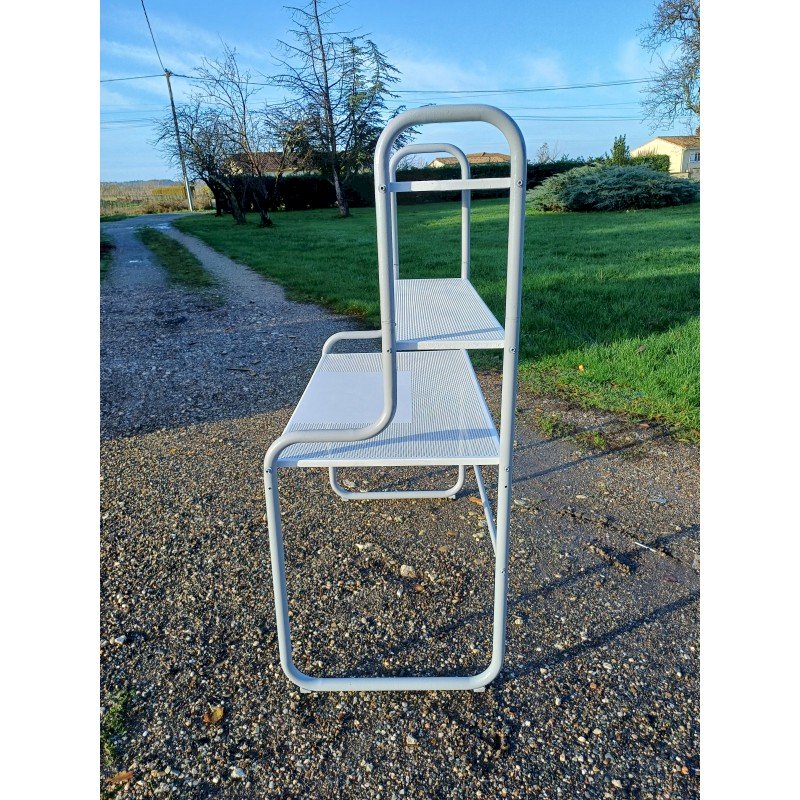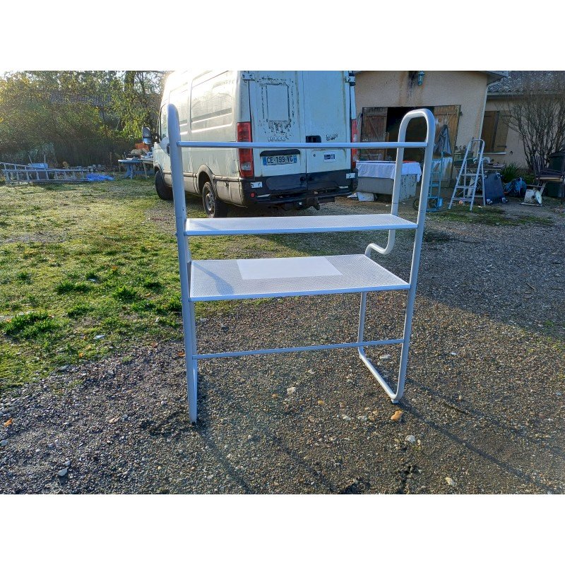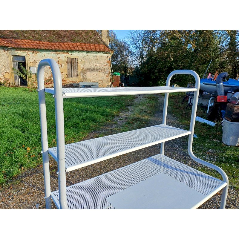 Industrial Iron Furniture, perforated metal shelves width: 30 cm, height: 148 cm, length and width: 110 cm by 61 cm, top height: 70 cm, very good condition.