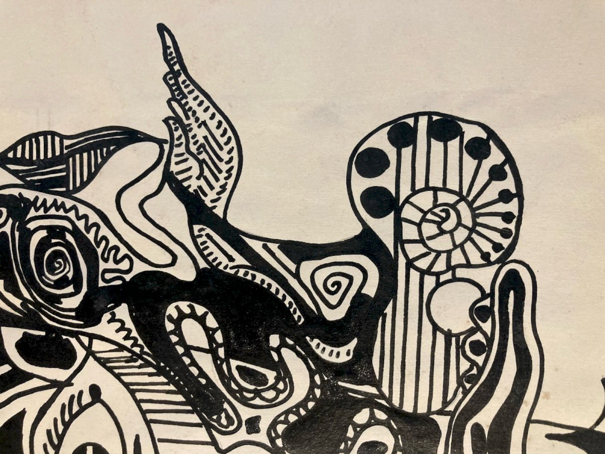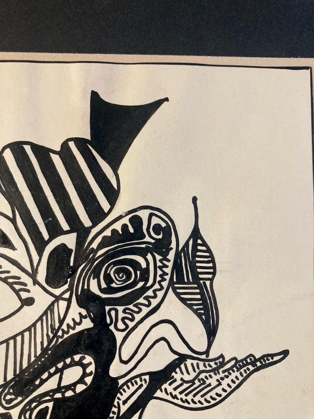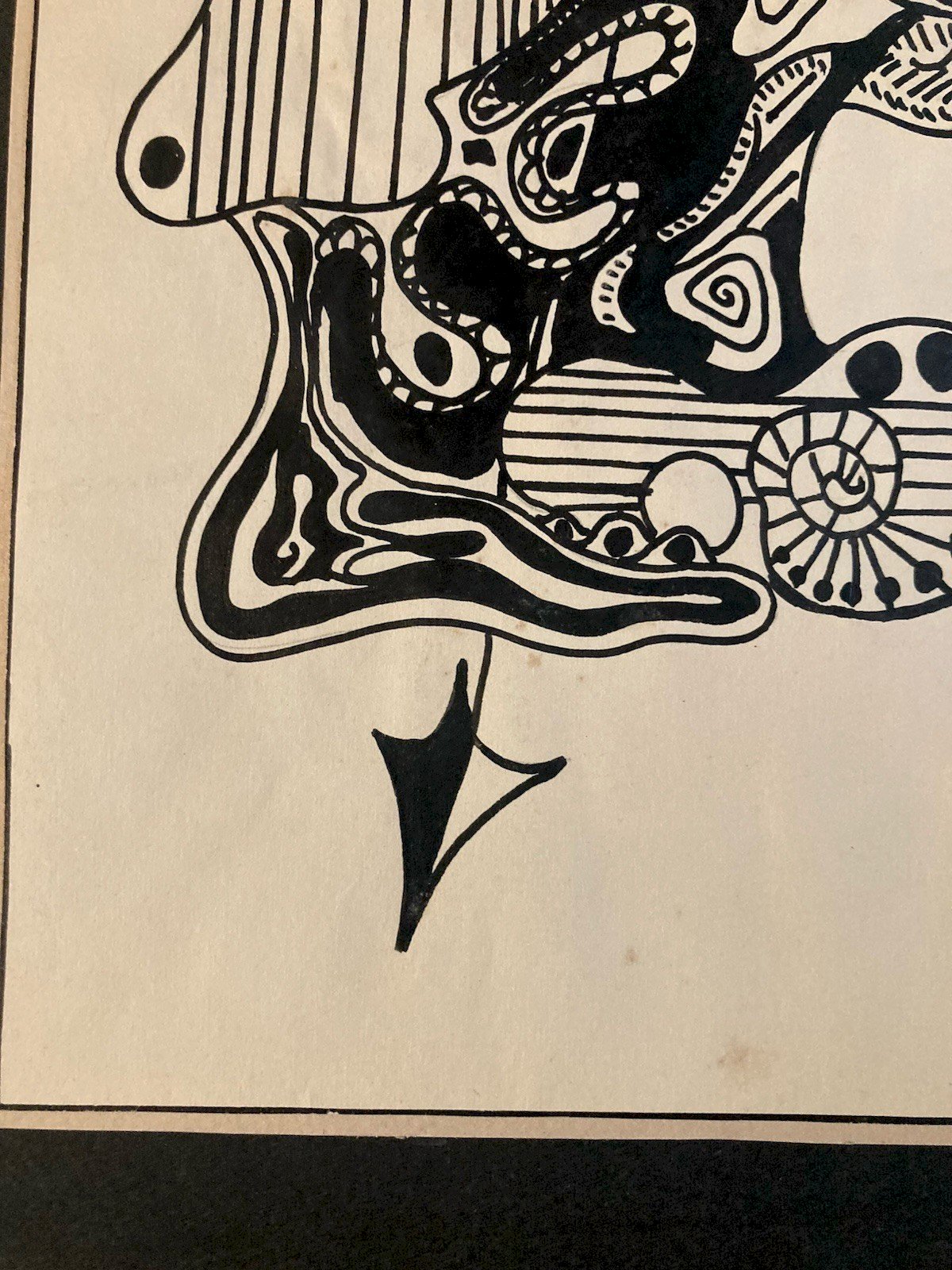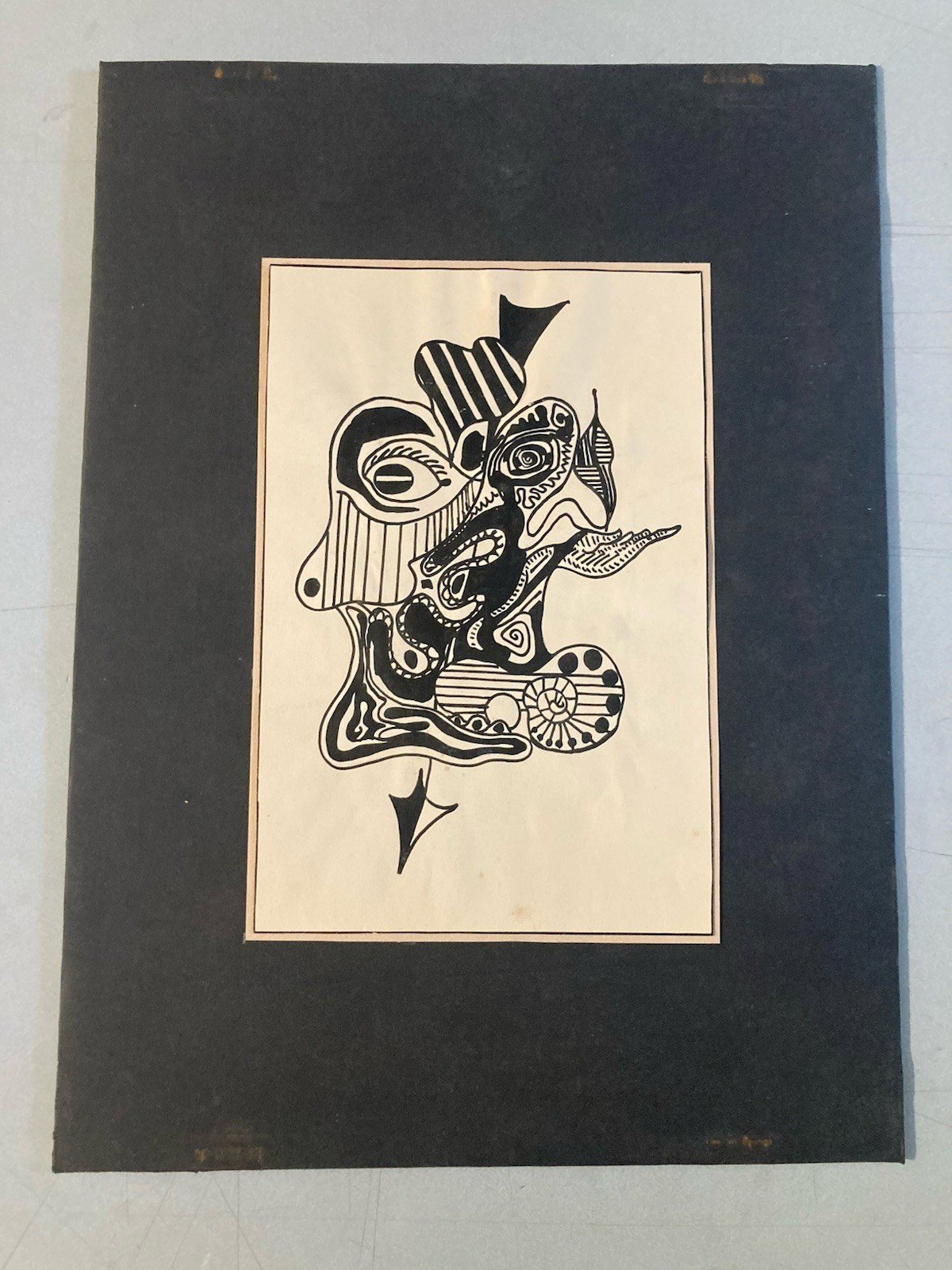 Ink Drawing Cubist Portrait Post-Cubism Paper 1980 Art To Identify