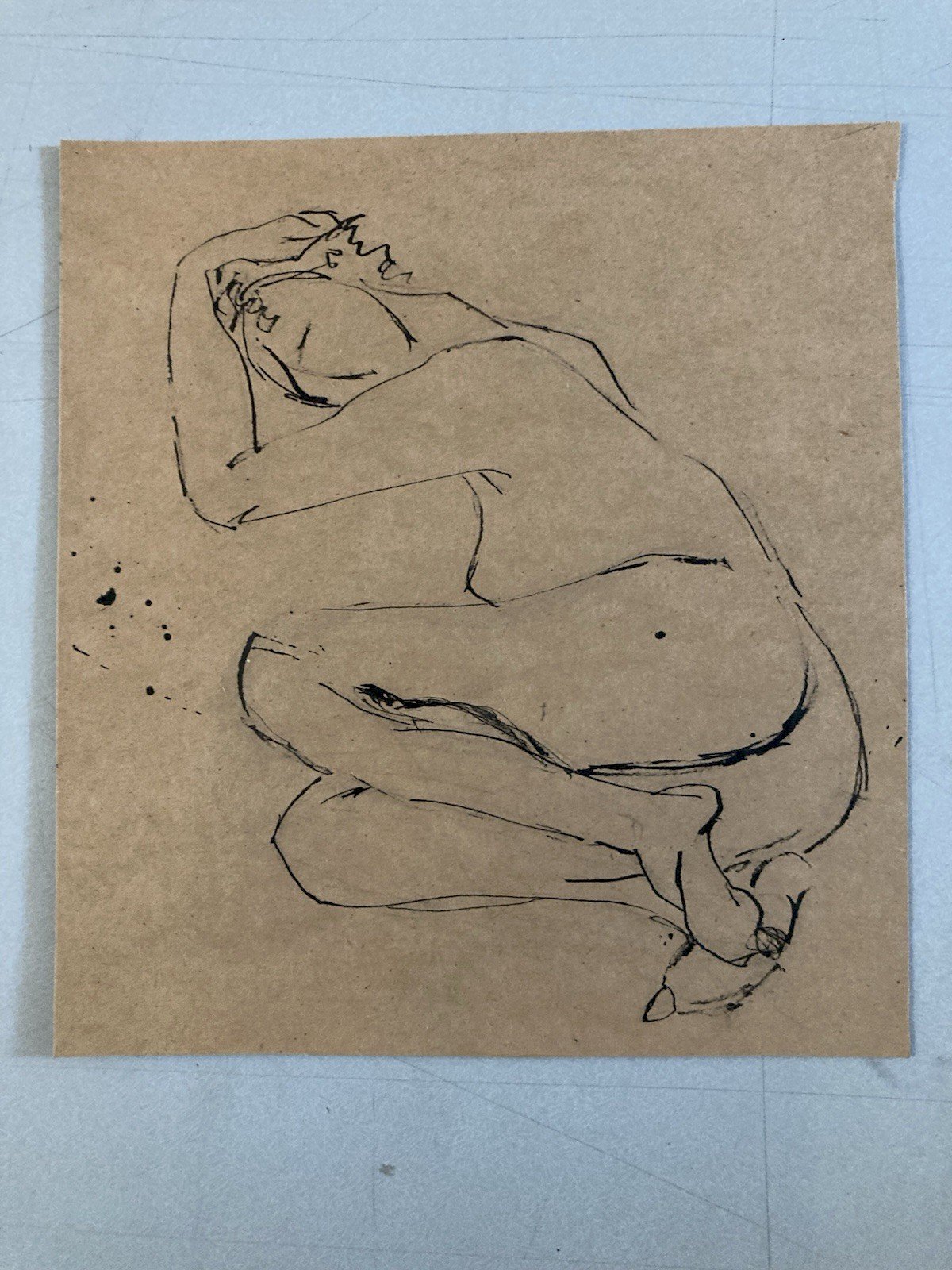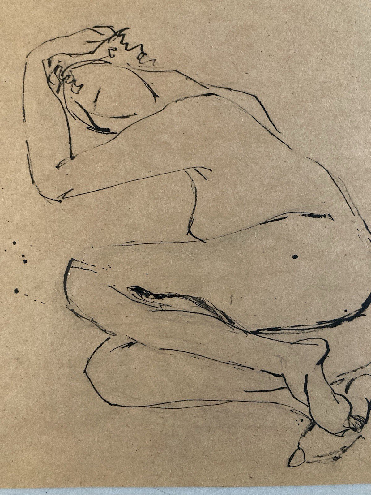 Ink Wash Drawing Nude Woman Minimalist Erotic Art 1970 To Be Identified