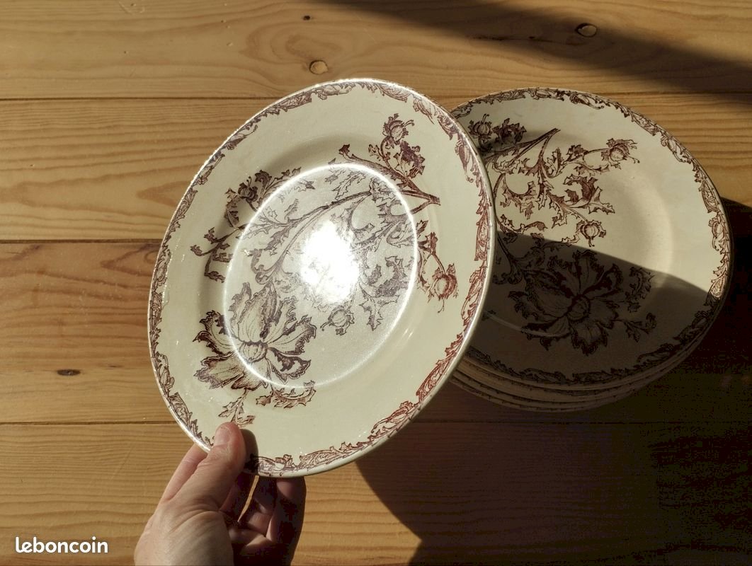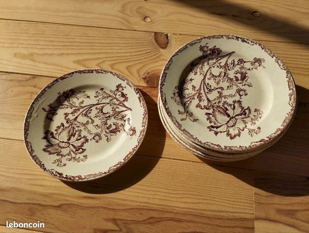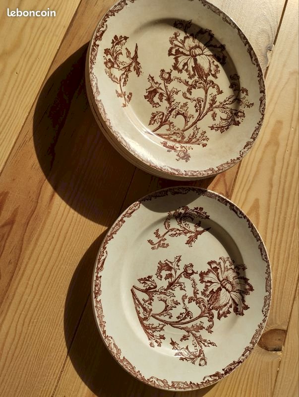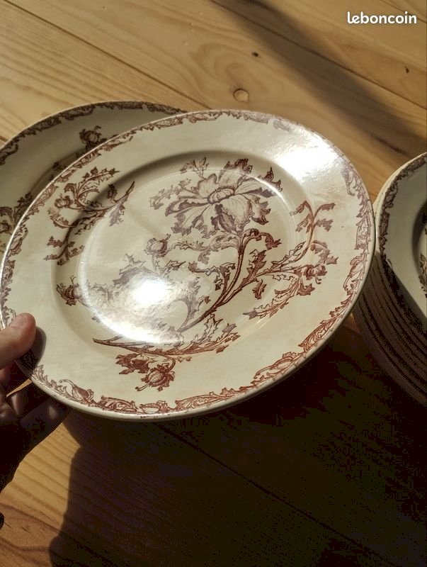 Old Crockery Service Plates Dish KG Lunéville model Oeillet Terre De Fer