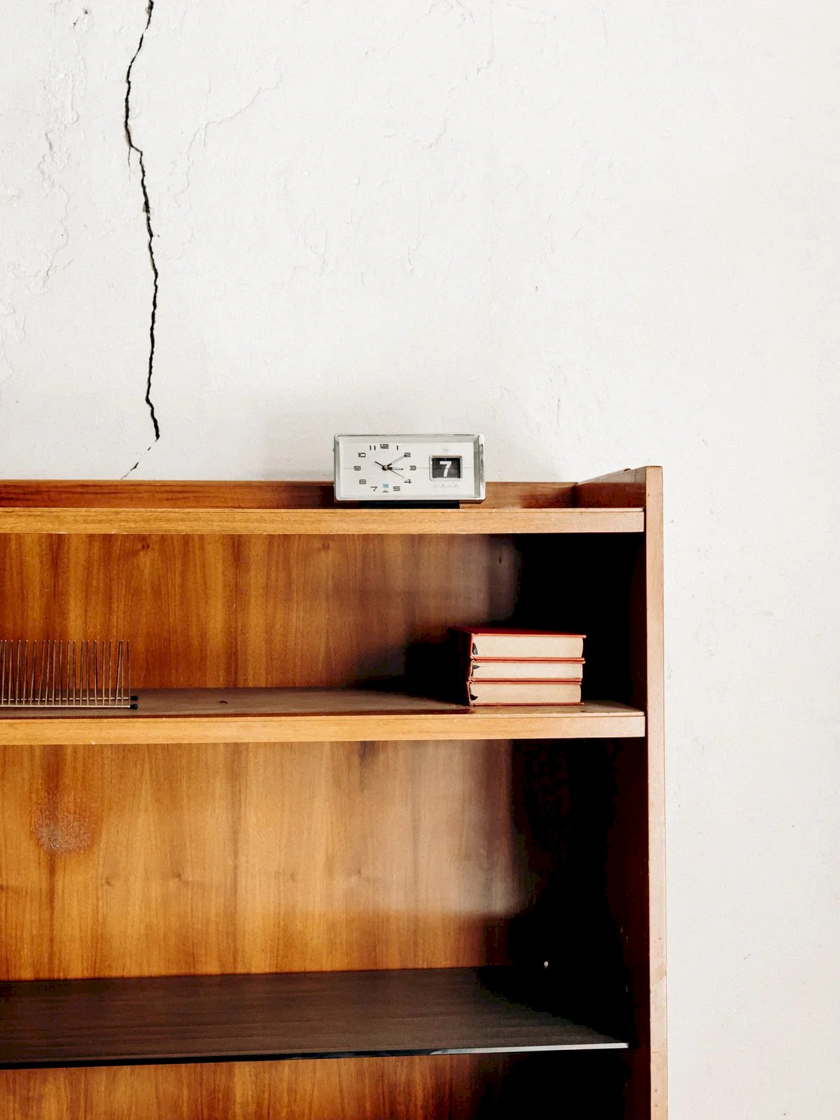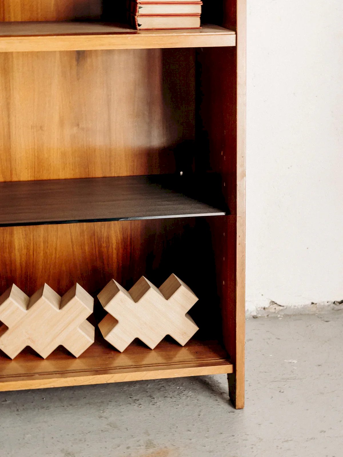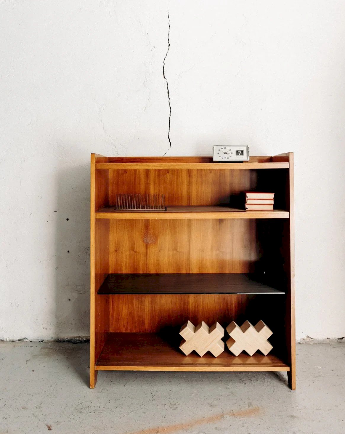 Add a vintage touch to your interior with this stunning Danish Mid-Century shelf from the 1950s. Its iconic compass design and wooden structure give it timeless charm. Its smoked glass top adds a note of elegance and lightness, while its storage space, originally equipped with sliding doors, offers practicality and style. A rare and authentic piece to enhance your decor. Web exclusive, delivery will be made to your home! Length: 100 cm Height: 116 cm Depth: 46 cm Height of the small niche: 21.5 cm Height of the large niche: 37.5 cm Condition: Used item: An item that has been used. Item with some superficial wear marks,... Used item: An item that has been used. Item with some superficial wear marks, fully operational and functioning correctly. It may be a demonstration model or an item returned to the store after a short period of use. Any possible imperfections. Brand: Debongout Type: Curated product Material: Wood Style: Contemporary Custom: Shelves
