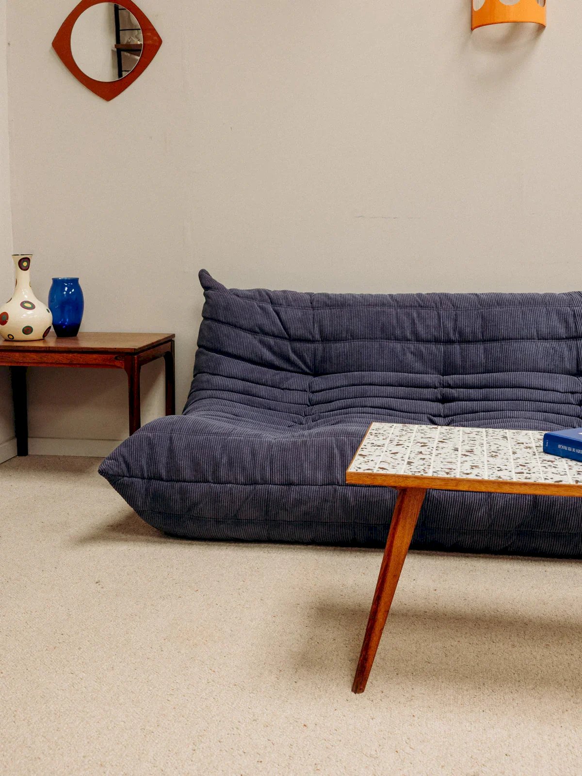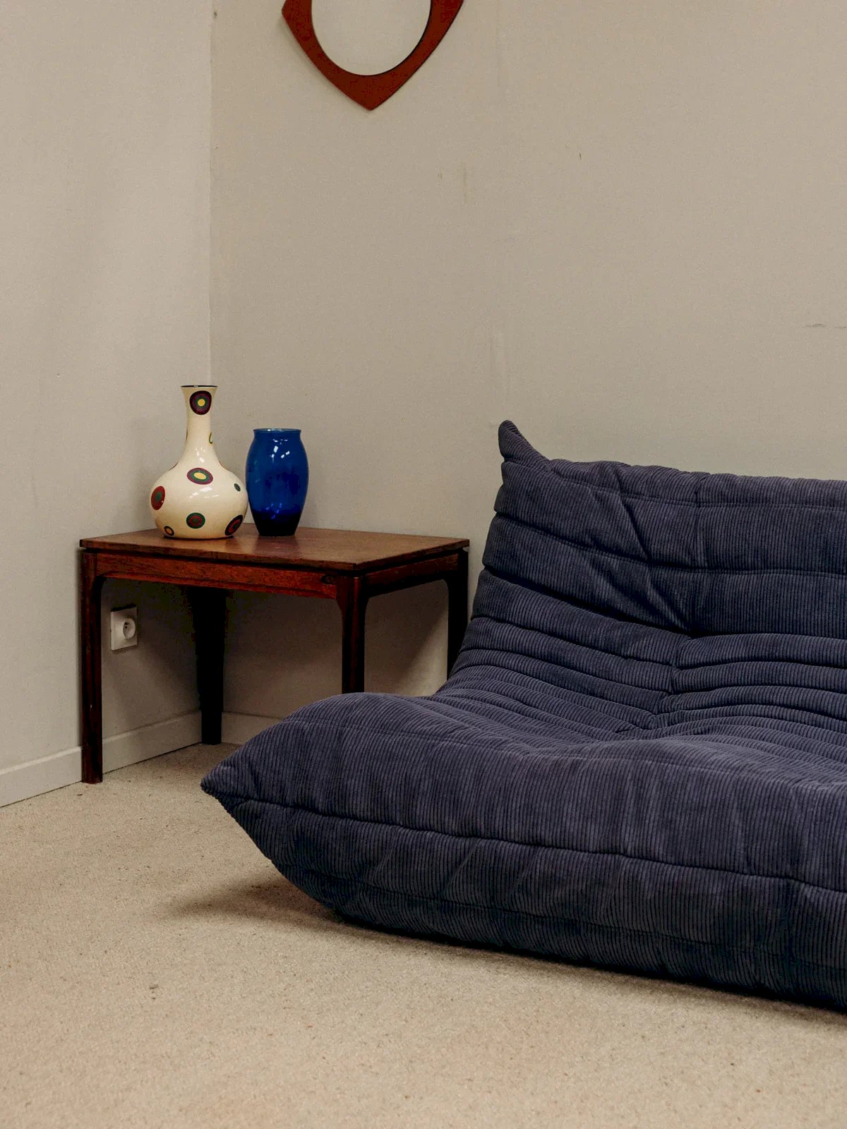 Give your interior a touch of elegance with the blue Togo 3-seater sofa, featuring a new cover. Iconic design and exceptional comfort come together in this sofa, which perfectly hugs the body's shapes. Its blue hue adds a note of freshness and modernity to your living room. Ideal for moments of relaxation, it will charm with its unique style and practicality. Don't miss the opportunity to add this must-have piece to your decor! Length: 174 cm Height: 70 cm Seat height: 38 cm Depth: 102 cm Condition: Used: Item has been used. Item shows some signs of superficial wear... Used: Item has been used. Item shows some signs of superficial wear, fully functional and operating correctly. It may be a demonstration model or an item returned to the store after a short period of use. Any possible imperfections. Color: Multicolor Height: Velvet Width: Sofas and benches Brand: Debongout Type: Thrifted product Material: Velvet Style: Contemporary