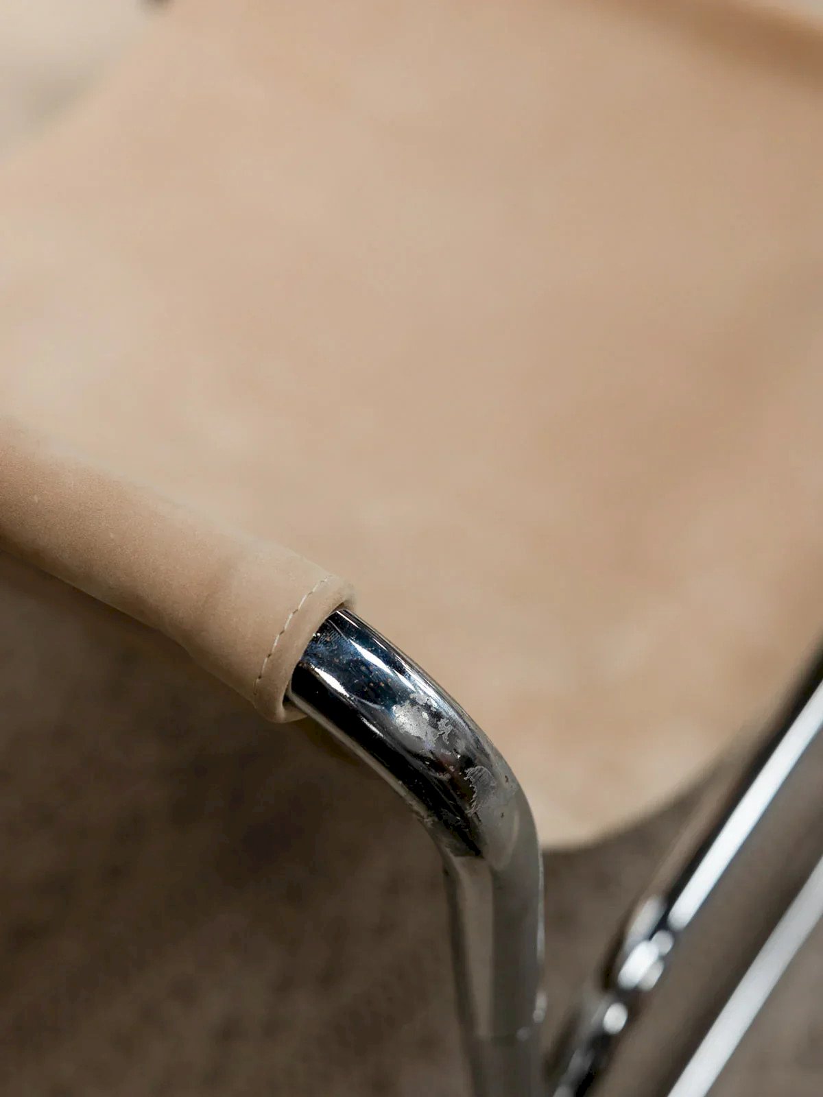 Discover the Gillis Lundgren armchair, a classic of Scandinavian design that combines comfort and lightness. Its tubular chrome structure gives it an elegant and sturdy look, while its freshly reupholstered leather fabric ensures a pleasant seat. A perfect piece to bring style and character to your interior. Length: 75 cm Height: 82 cm Seat height: 22 cm Depth: 85 cm Seat depth: 66 cm Condition: Used: Item has been used. Item shows some superficial signs of wear, fully operational and functioning correctly. It may be a demonstration model or an item returned to the store after a short period of use. Any possible imperfections. Color: Multicolor Height: Chrome, Leather Width: Armchairs and lounge chairs Brand: Debongout Type: Vintage product Material: Chrome, Leather Style: Contemporary