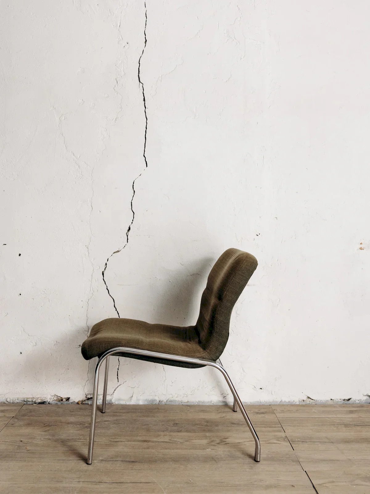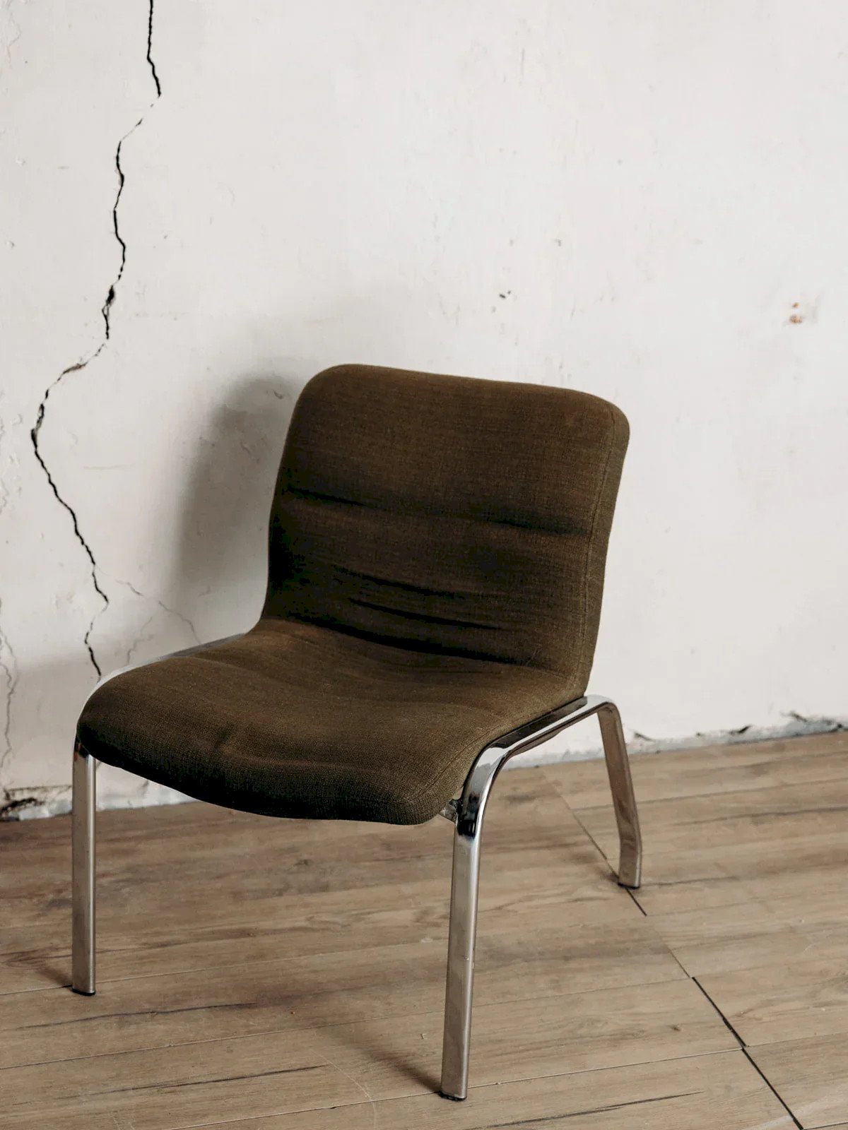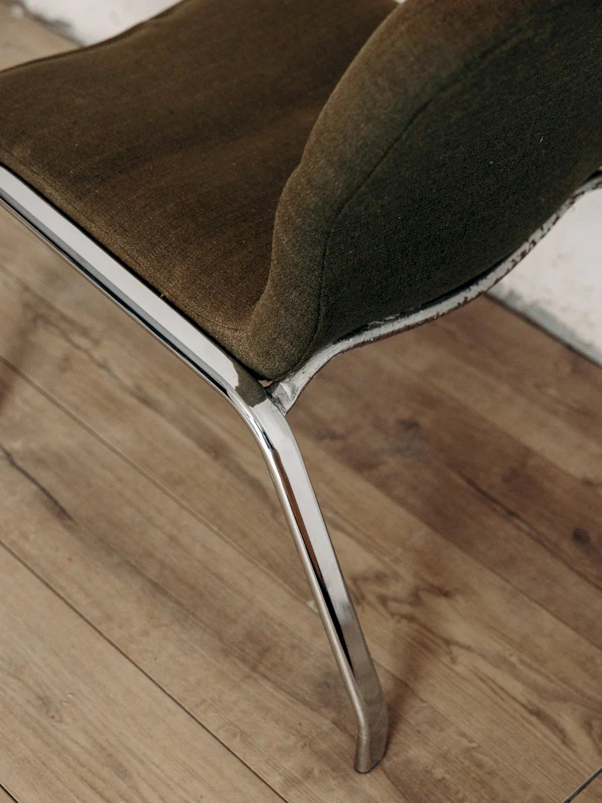 Bring a contemporary touch to your interior with this chrome metal chair and khaki fabric. Its sleek and elegant design makes it a must-have for your decor. The chrome metal structure ensures both strength and lightness, while the khaki fabric invites relaxation and conviviality. Ideal for a modern living room or a cozy reading nook, this chair masterfully combines comfort and style. Sold individually, two quantities are available. Length: 53 cm Width: 66 cm Height: 80 cm Seat height: 45 cm Condition: Used: Item has been used. Item shows some signs of superficial wear... Used: Item has been used. Item shows some signs of superficial wear, fully operational and functioning properly. It may be a display model or an item returned to the store after a short period of use. any possible imperfections. Color: Multicolor Height: Chrome, Fabric, Metal Width: Armchairs and Lounge Chairs Brand: Debongout Type: Curated Product Material: Chrome, Fabric, Metal Style: Contemporary