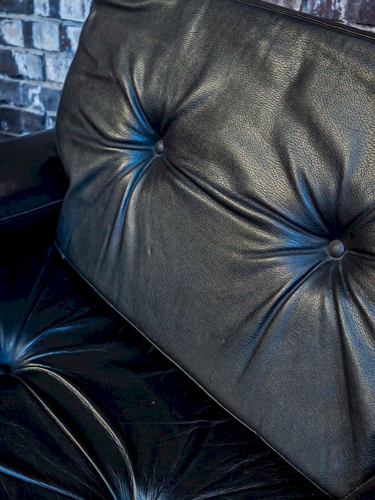 Discover our 70s square armchair, combining elegance and comfort. With its chrome metal frame and black leather upholstery, it will bring a retro-chic touch to your interior. Although it shows some signs of wear, this reflects its history and unique charm. These armchairs are an opportunity not to be missed for vintage design enthusiasts. Sold individually, 2 pieces are available. Length: 88 cm Width: 76 cm Height: 74 cm Seat height: 40 cm Seat depth: 50 cm Seat width: 51 cm Condition: Used: Item has been used. Item shows some superficial signs of wear,... Used: Item has been used. Item shows some superficial signs of wear, fully operational and functioning correctly. It may be a demonstration model or an item returned to the store after a short period of use. any potential imperfections. Color: Multicolor Height: Leather, Chrome Width: Armchairs and lounge chairs Brand: Debongout Type: Vintage product Material: Leather, Chrome Style: Contemporary