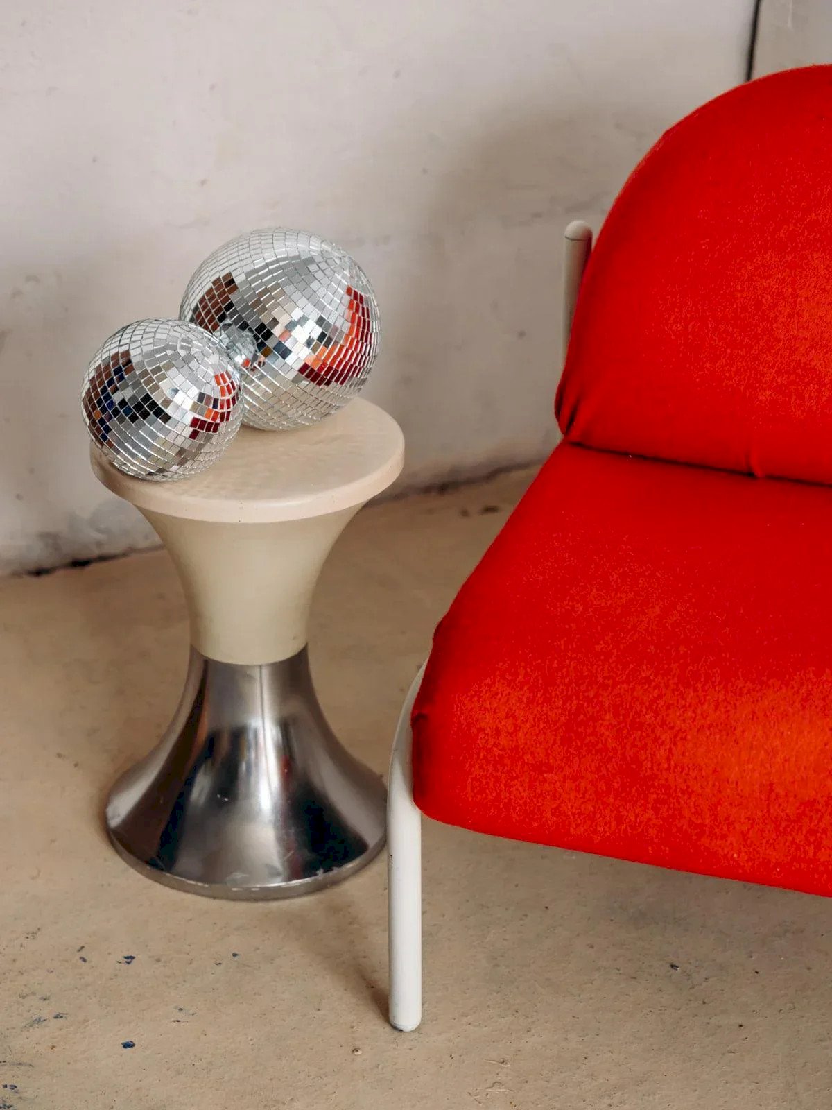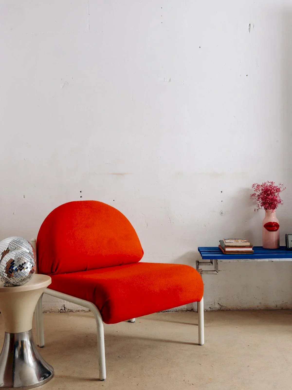 This Sauvignet armchair is the must-have piece for a stylish living room. We love its lovely rounded vintage lines and the contrast of its white structure with its reddish-orange fabric seat. Jakob pairs beautifully with other vintage furniture or in a more modern setting to create the perfect mix of new and second-hand. Sold individually. Two pieces are available. Length: 68 cm Depth: 68 cm Seat height: 42 cm Total height: 78 cm Condition: Used: Item that has been used. Item showing some superficial signs of wear... Used: Item that has been used. Item showing some superficial signs of wear, fully operational and functioning correctly. It may be a display model or an item returned to the store after a short period of use, with possible imperfections. Color: Multicolor Height: Metal, Fabric Width: Armchairs and lounge chairs Brand: Debongout Type: Vintage product Material: Metal, Fabric Style: Contemporary