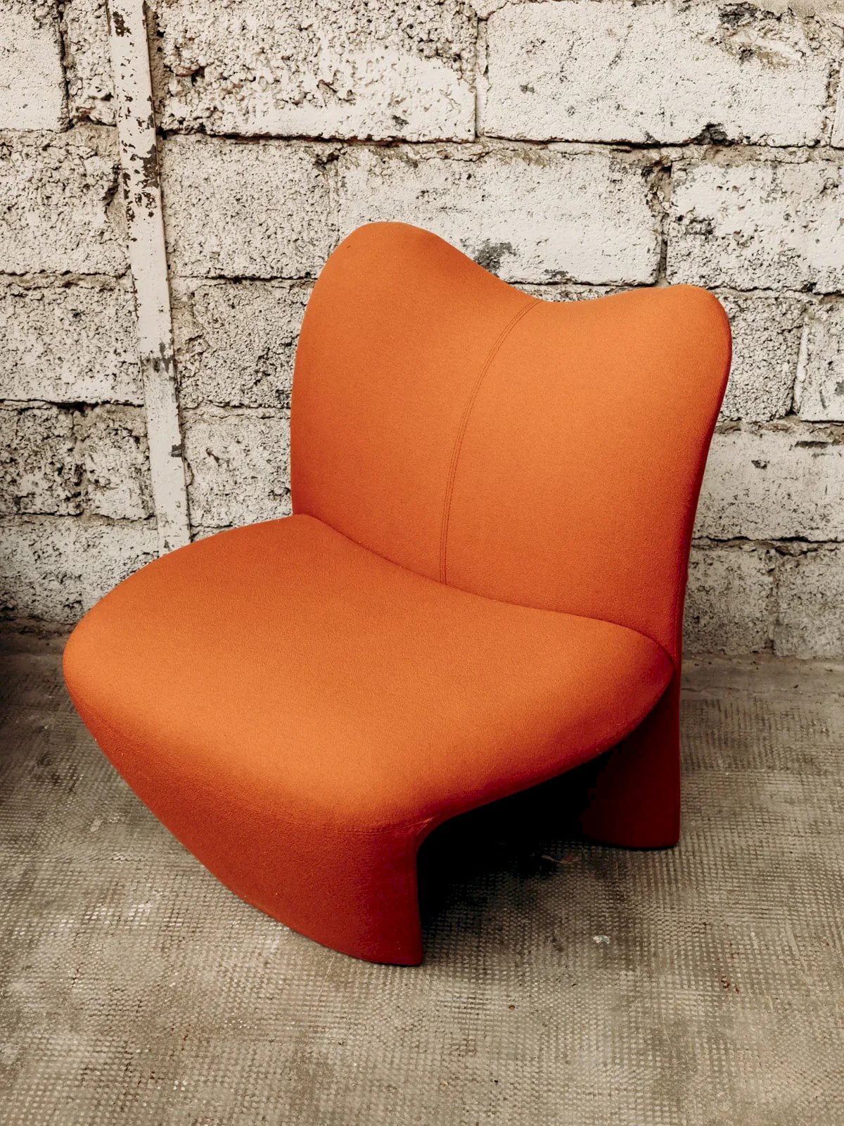 Discover the Peter Wheeler Jane Dillon chair pair, an iconic piece of mid-century design from the 1990s, signed by Kron Design. With its bold shades of pink/red, these armchairs combine comfort and aesthetics to bring a chic retro touch to your interior. Their sculptural silhouette and elegant lines make them a perfect choice for those who appreciate contemporary style while retaining a vintage soul. Offering generous seating, they are ideal for relaxing or adding a touch of originality to your decor. Length: 76 cm Width: 70 cm Height: 81 cm Seat height: 45 cm Condition: Used: Item has been used. Item shows some signs of superficial wear, fully operational and functioning correctly. It may be a demo model or an item returned to the store after a short period of use. Color: Multicolor Height: Fabric Width: Armchairs and lounge chairs Brand: Debongout Type: Vintage product Material: Fabric Style: Contemporary