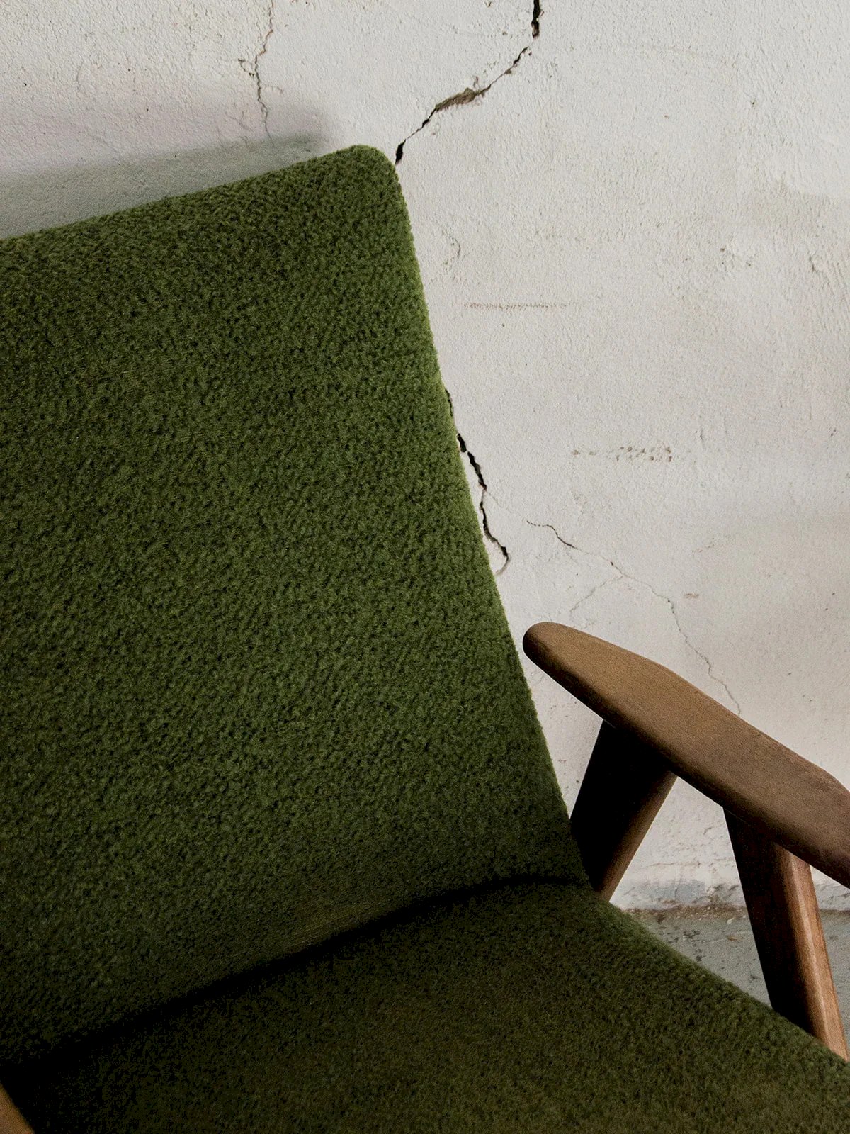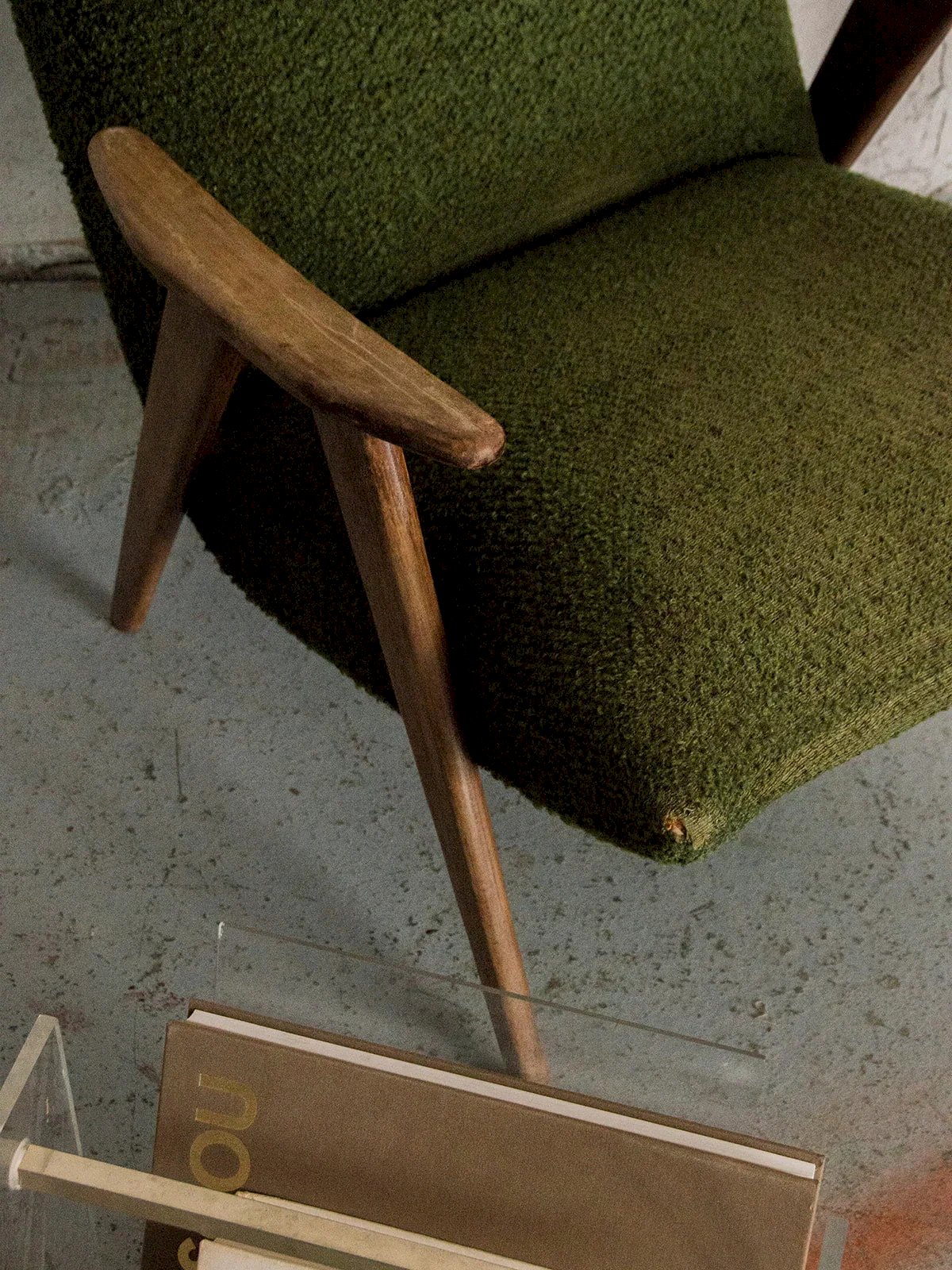 Bring a Nordic touch to your interior with this wooden armchair featuring a bold Scandinavian style. Its wooden armrests and legs provide a strong presence and sturdy structure. The seat and backrest in khaki fabric offer softness and simplicity. The fabric shows some signs of wear, adding to the vintage charm of the piece. Perfect for a reading nook or a calming living room. Length: 61 cm Height: 76 cm Seat height: 37 cm Depth: 69 cm Condition: Used: Item that has been used. Item showing some signs of superficial wear, fully operational and functioning correctly. It may be a display model or an item returned to the store after a short period of use. Any imperfections. Color: Multicolor Height: Wood, Fabric Width: Armchairs and lounge chairs Brand: Debongout Type: Vintage item Material: Wood, Fabric Style: Contemporary