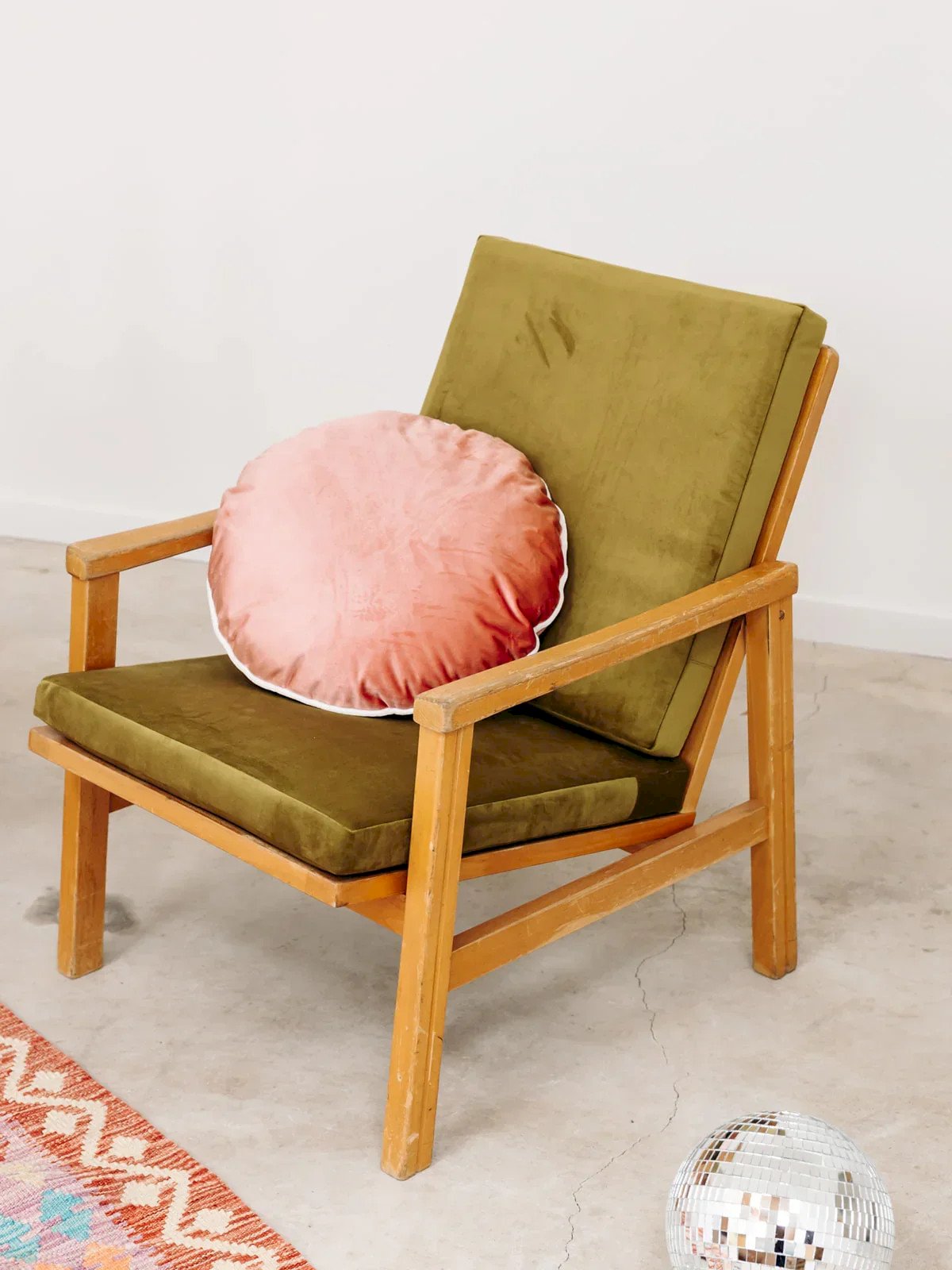 Discover this vintage armchair with Scandinavian flair covered in its striking green velvet fabric! It combines comfort and retro elegance. Its structure rests on light wooden legs, adding a touch of lightness to the whole. Perfect for creating a vintage atmosphere in your living room or office, this streamlined armchair will fit both contemporary interiors and more classic decorations. Width: 58 cm Height: 74 cm Seat height: 38 cm Depth: 62 cm Condition: Used: Item has been used. Item shows some superficial signs of wear, fully operational and functioning correctly. It may be a demonstration model or a returned item after a short period of use. Possible imperfections. Color: Multicolor Height: Wood Width: Armchairs and lounge chairs Brand: Debongout Type: Thrifted product Material: Wood Style: Contemporary