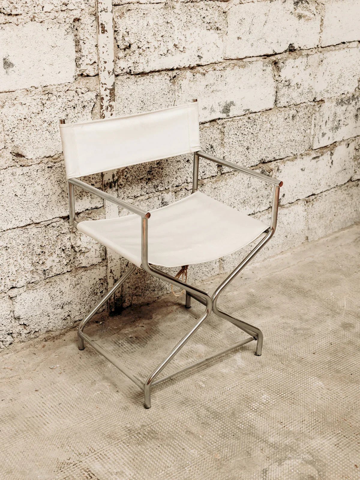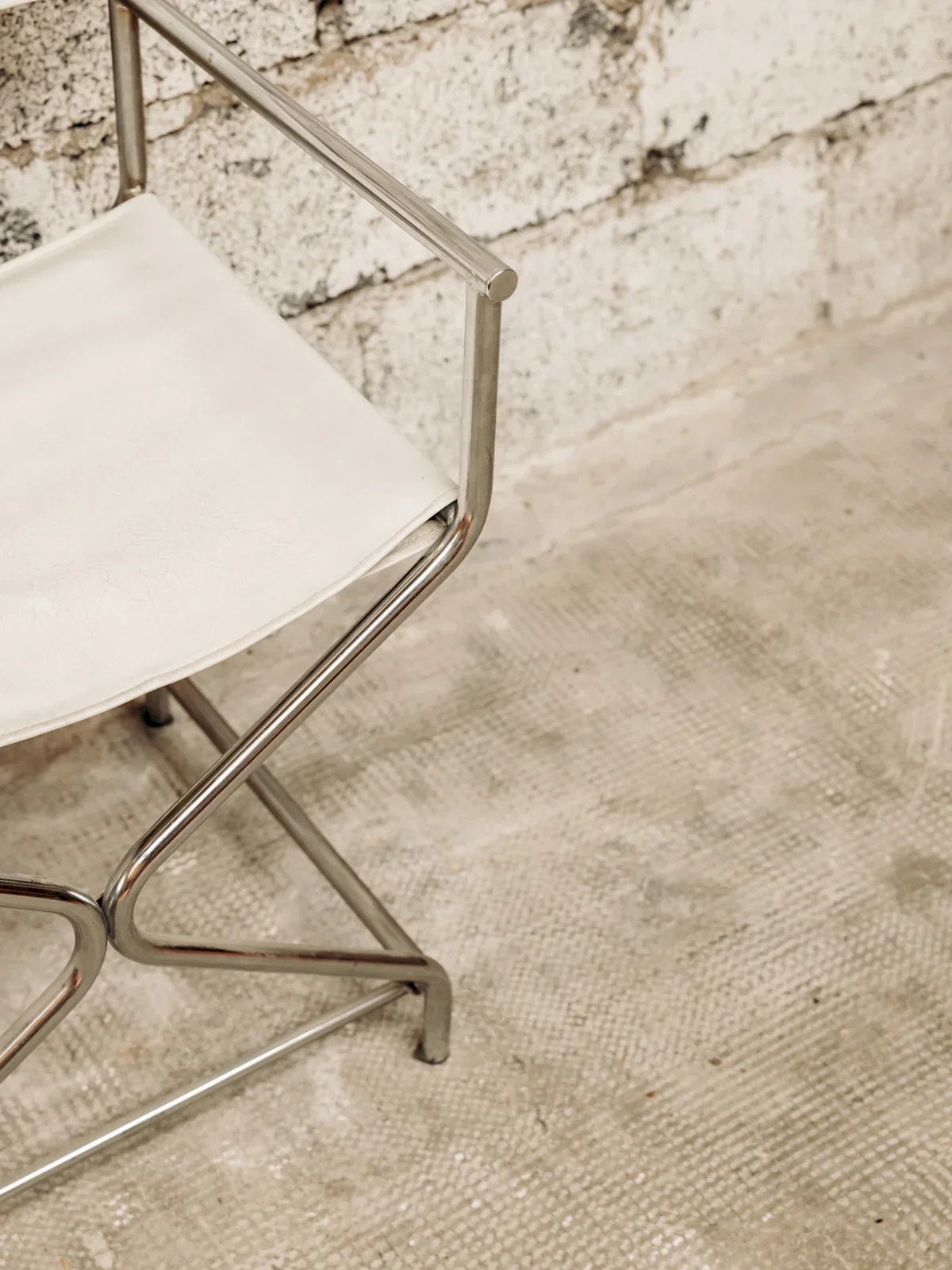 This chair with a contemporary look blends elegance and lightness with its white/grey synthetic leather seat, enhanced by a braided rope design on top. Its slim metal structure, with a crossed tubular steel base at the front, gives it a graphic and modern silhouette. Perfect for an interior with a design or industrial style, it combines comfort, originality, and sturdiness. Length: 50 cm Width: 42 cm Height: 81 cm Seat height: 47 cm Condition: Used: Item has been used. Item shows some superficial wear marks, ...Used: Item has been used. Item shows some superficial wear marks, fully operational and functioning correctly. It may be a demonstration model or an item returned to the store after a short period of use. any potential imperfections. Color: Multicolor Height: Fabric, Metal Width: Chairs and armchairs Brand: Debongout Type: Vintage item Material: Fabric, Metal Style: Contemporary
