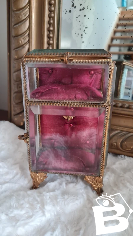 Above €25, please choose a carrier if possible. Take advantage of bulk buying: 5 items - 10% 10 items - 20% 20 items - 30% No purchases possible for buyers with fewer than 10 ratings and for profiles with too many negative ratings. Please carefully look at the photos to see the imperfections. Jewelry box dimensions: height: 16.2 cm, width: 9 cm, depth: 6.2 cm #jewelrybox #gift #chic #collection #antique #antiquejewelrybox #pocketwatchjewelrybox #napoleonIIIjewelrybox #napoleonIII #pocketwatchshowcase #jewelryshowcase
