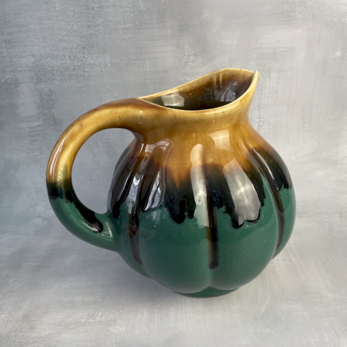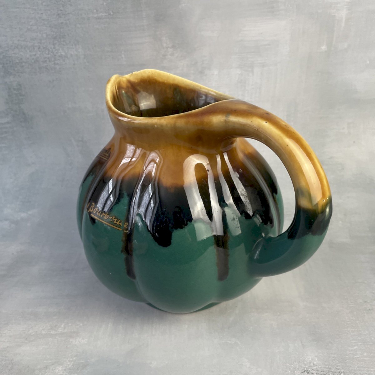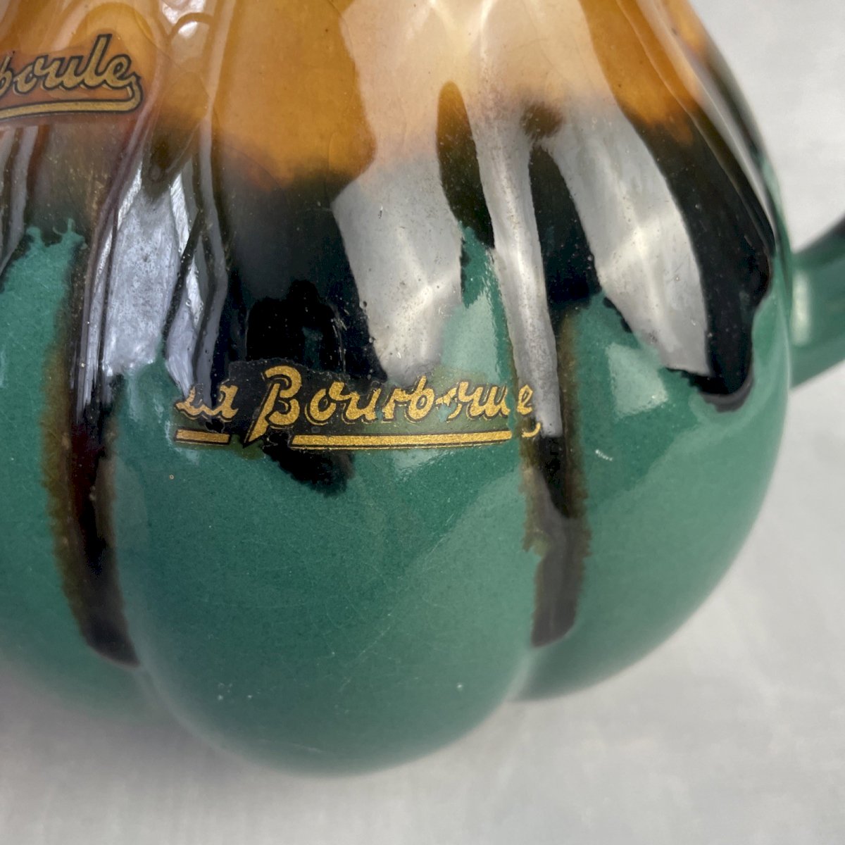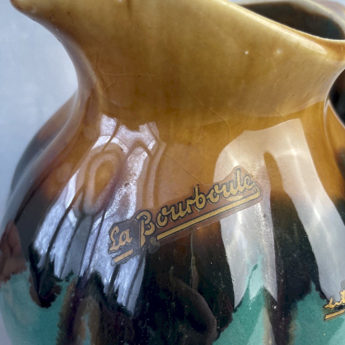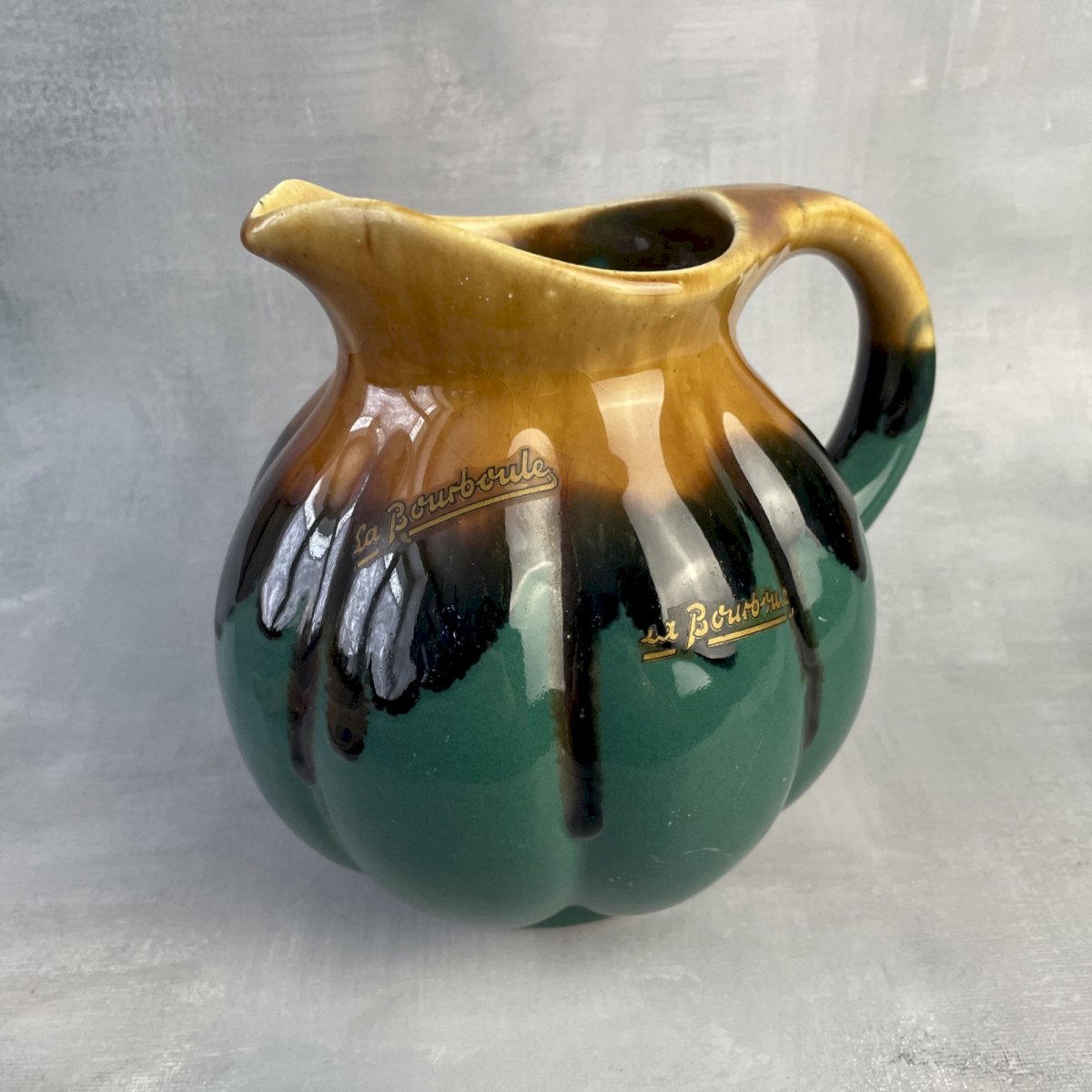 Unsigned pitcher/jug in green and brown tones, DLG ALPHO Alphonse Mouton, with La Bourboule label (possibility of removing) Height ~ 17 cm Diameter of base ~ 8.5 cm Total weight ~ 0.9 kg Excellent condition, some scratches, see photos. Remember to group your purchases to reduce shipping costs!