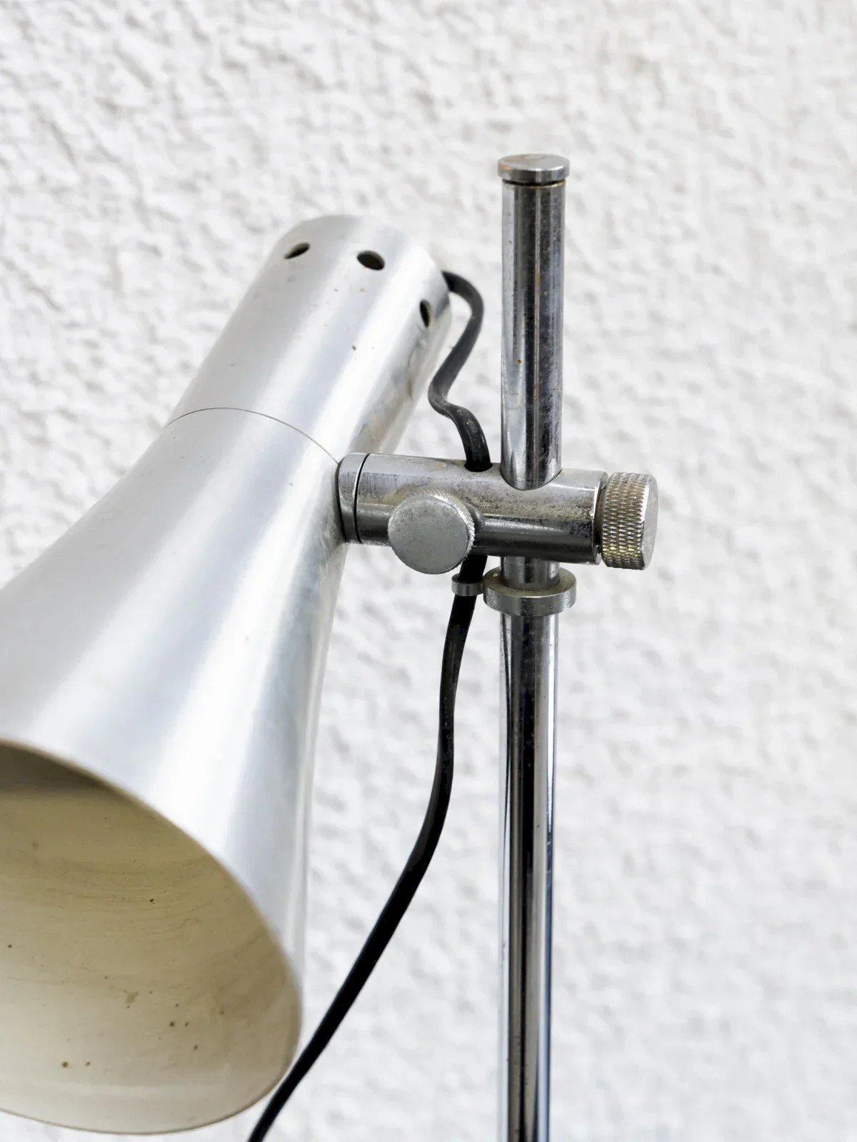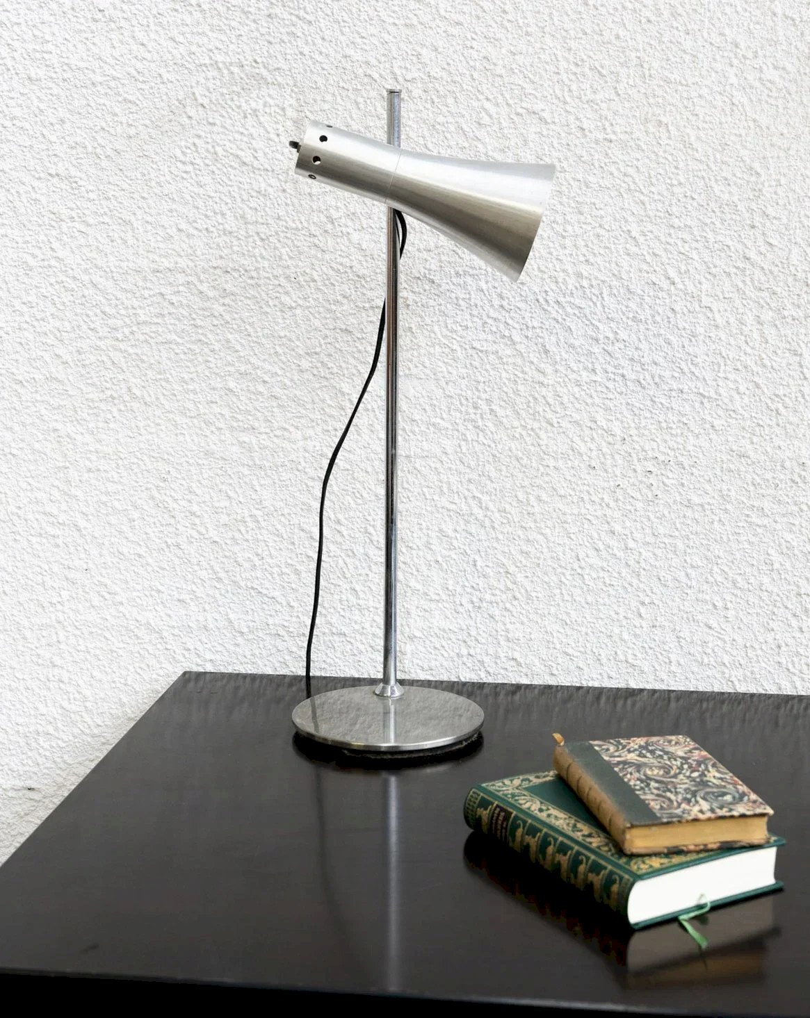 Add a vintage and sophisticated touch to your interior with this iconic 70s lamp. Crafted from brushed metal, it combines timeless design and sturdiness. Its sleek lines and subtle shine fit perfectly in a living room, bedroom, or even an office. Ideal for creating a warm and retro atmosphere, this lamp will quickly become the centerpiece of your decor. Give your space a unique personality with this gem from the era, redesigned to adapt to current trends. Bring the charm of the seventies back to life today! Online exclusive, the meeting will take place at your home! Height: 62.5 cm Condition: Used: Item that has been used. Item showing some superficial wear marks, ... Used: Item that has been used. Item showing some superficial wear marks, fully operational and functioning correctly. It may be a demonstration model or an item returned to the store after a short period of use. any potential imperfections. Brand: Debongout Type: Curated product Style: Contemporary Material: Metal Vintage: Yes