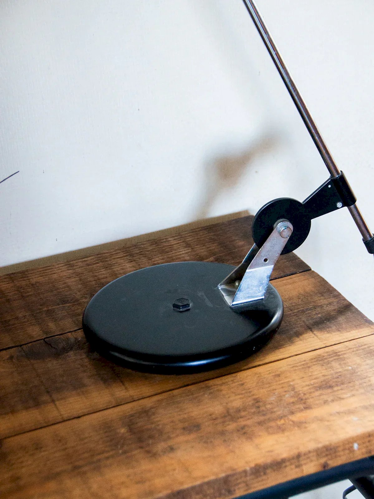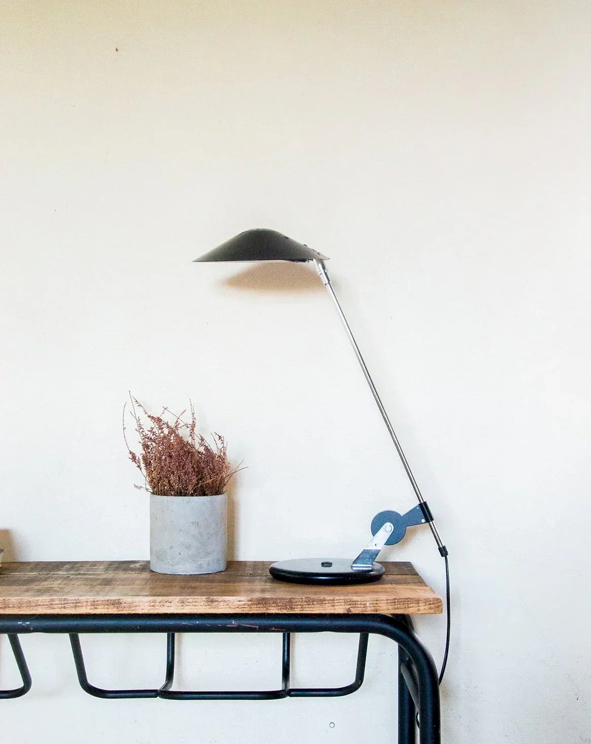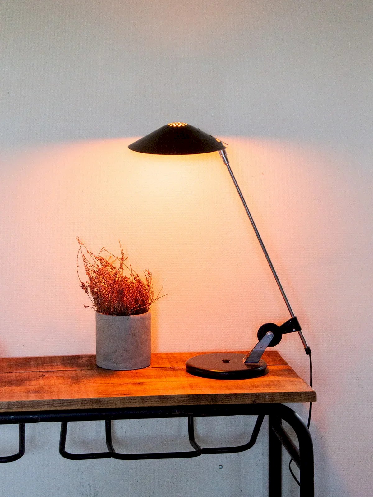Bring a contemporary touch to your workspace with this black desk lamp. Its large metal neck allows for precise and optimal lighting, perfect for focusing light where you need it. The black finish easily complements any decor, adding a modern note to your interior. Ideal for an office, a work table, or a reading nook. A practical and stylish lighting solution to accompany you daily. Web exclusive, the meeting will take place at your home! Height: 59 cm Diameter of the base: 31 cm Condition: Used: Item has been used. Item shows some signs of superficial wear,... Used: Item has been used. Item shows some signs of superficial wear, fully operational and working correctly. It may be a demonstration model or an item returned to the store after a short period of use. Any imperfections. Brand: Debongout Type: Thrifted Product Style: Contemporary Material: Metal Vintage: Yes