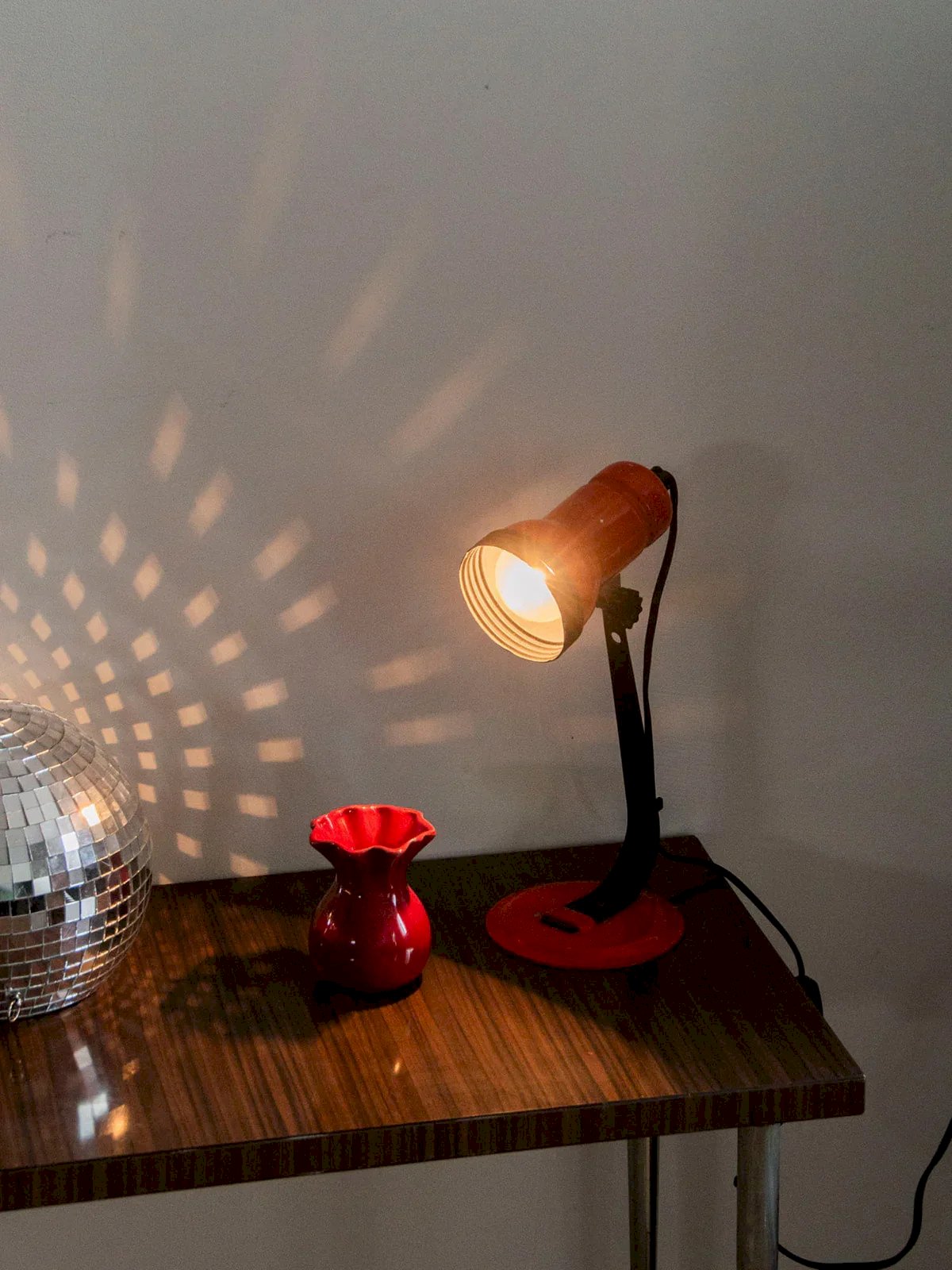 Add a warm and dynamic touch to your interior with the small orange table lamp. Its sleek design and vibrant hue make it an ideal decorative accessory for any room. Perfect on a bedside table or a desk, it emits a soft and pleasant light that creates a friendly atmosphere. Made with quality materials, this lamp combines aesthetics and functionality to brighten your moments. Height: 20 cm Length: 15 cm Width: 8 cm Diameter: 13 cm Condition: Used: Item has been used. Item shows some signs of superficial wear, ...Used: Item has been used. Item shows some signs of superficial wear, fully operational and functioning properly. It may be a demonstration model or an item returned to the store after a short period of use. Any imperfections. Brand: Debongout Type: Vintage Find Style: Contemporary Material: Metal Vintage: Yes