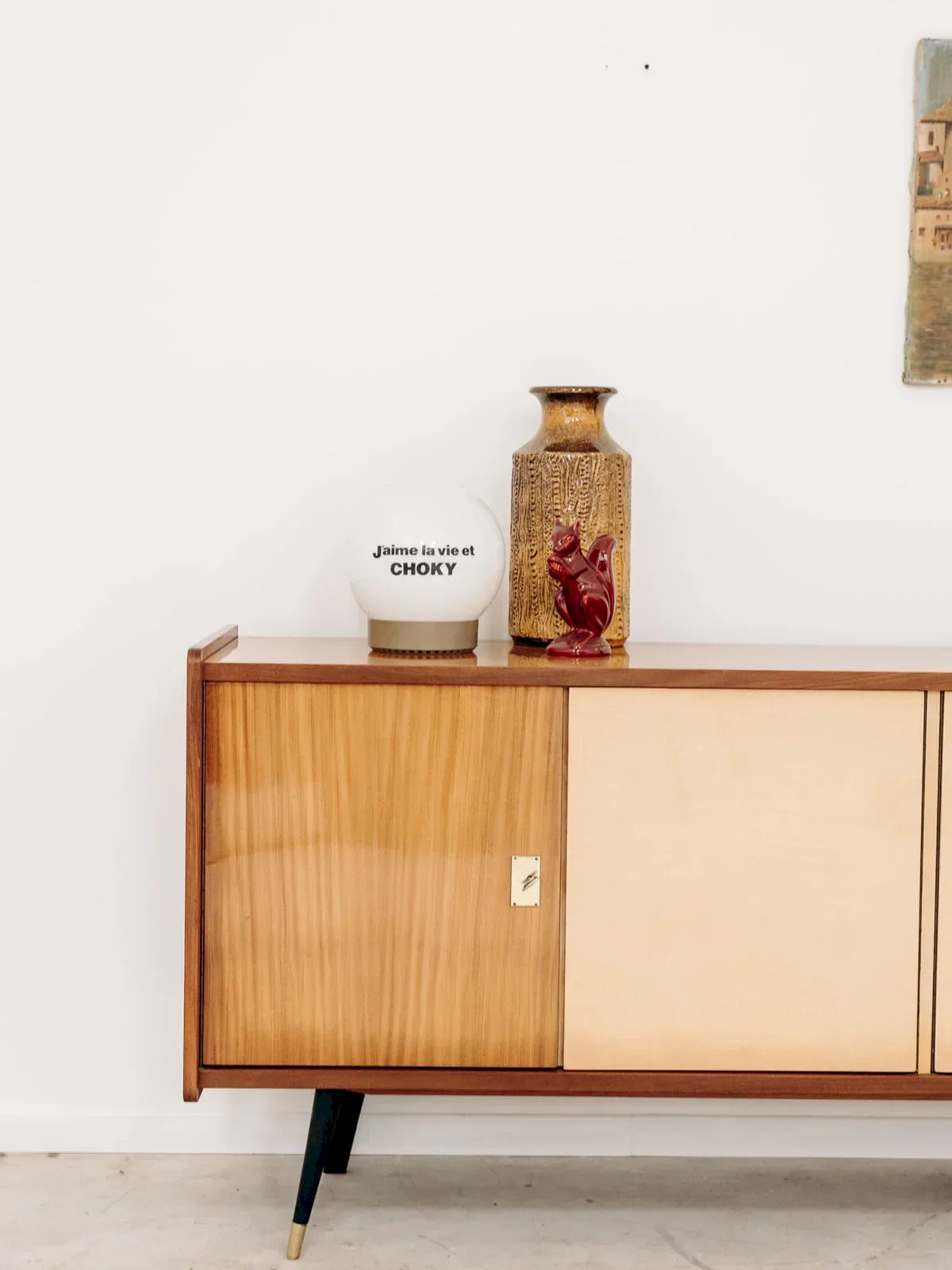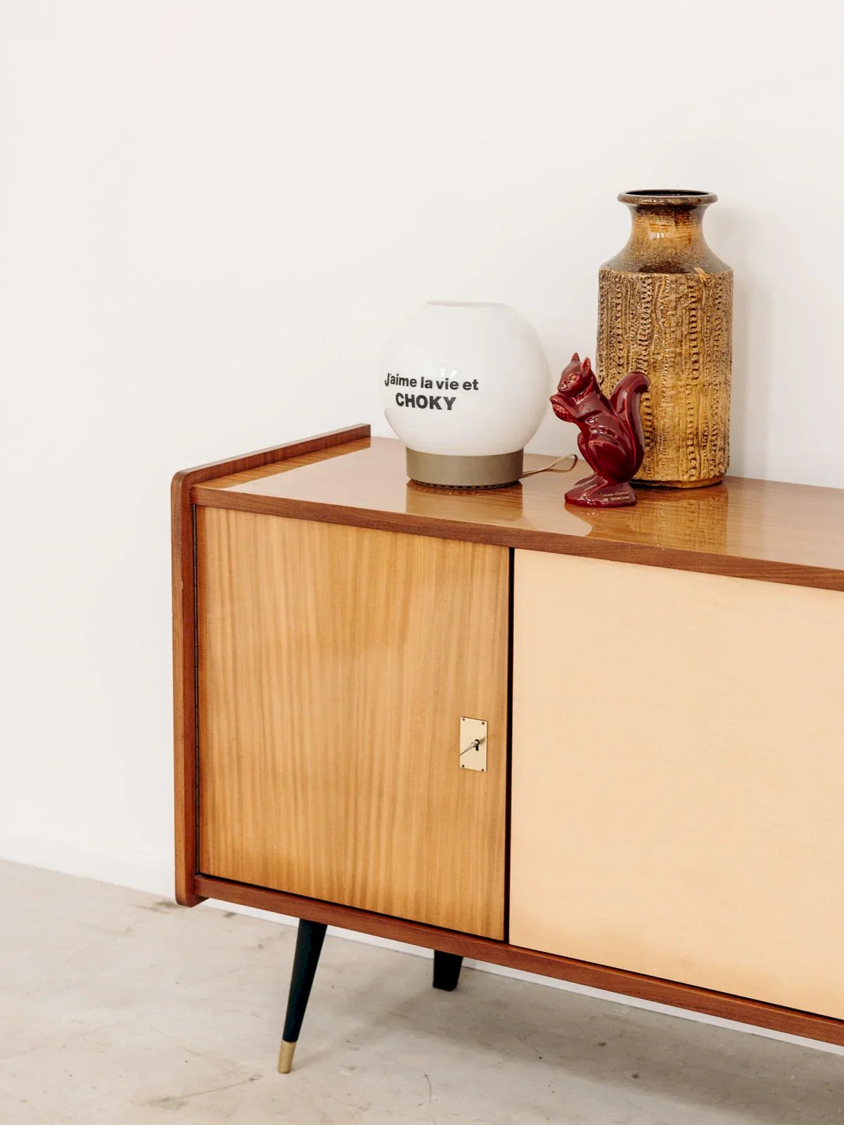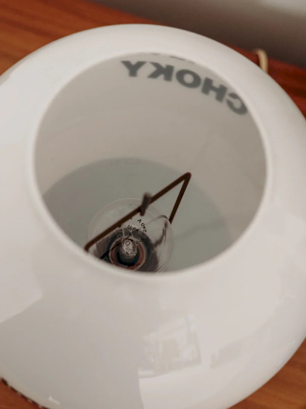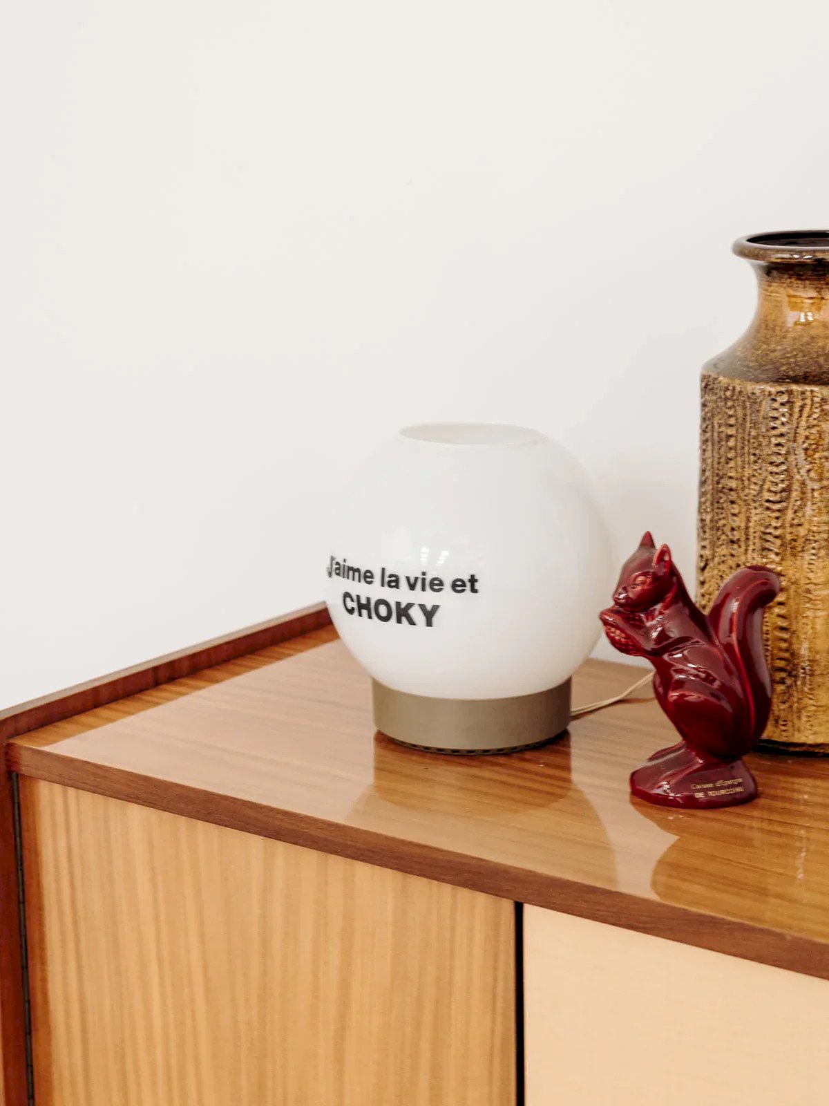 Fall for this vintage 1970s Choky advertising table lamp, designed for bistro counters. Its retro design, featuring a white opaline shade, gives it timeless charm. Perfect for adding a touch of authenticity to your interior, it evokes the warm and friendly atmosphere of yesteryear's cafés. A must-have for vintage lovers. Online exclusive, the meeting will take place at your home! Height: 25 cm Diameter: 23 cm Condition: Used: Item that has been used. Item showing some superficial signs of wear... Used: Item that has been used. Item showing some superficial signs of wear, fully operational and functioning correctly. It may be a demonstration model or an item returned to the store after a short period of use, with possible imperfections. Brand: Debongout Type: Curated product Style: Contemporary Material: Glass, Plastic Vintage: Yes