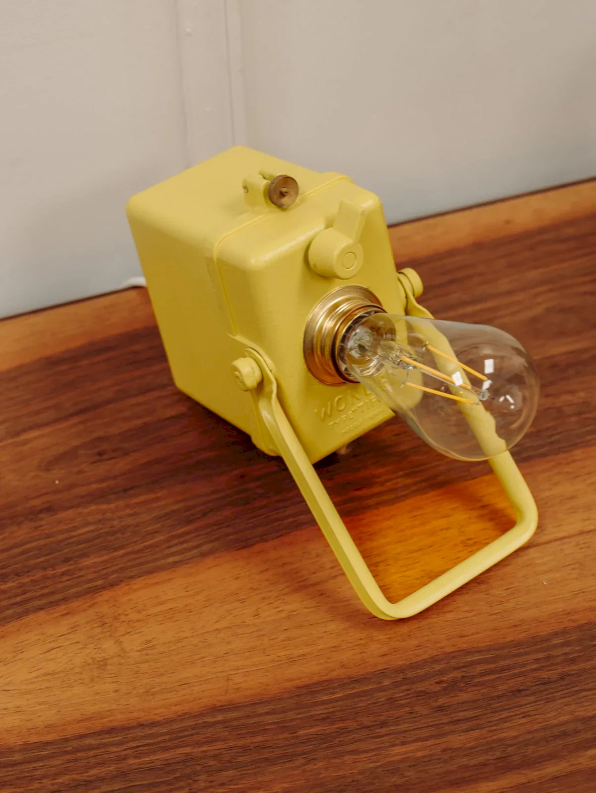 Discover the Tifon lamp, an iconic creation from the French company Wonder. Once used by our grandparents and institutions like the SNCF, this flashlight has been completely renovated to regain its former glory. Our workshop meticulously performed sandblasting to remove the old paint, followed by precise degreasing and the application of a high-adhesion primer. Several layers of paint and varnish ensure a durable finish, while the electrical system has been brought up to current standards. Each piece is unique, combining vintage charm with modern functionality. (Bulb not included) Length: 14 cm Width: 13.5 cm Height: 21.5 cm Condition: Used: Item has been used. Item shows some superficial signs of wear, ...Used: Item has been used. Item shows some superficial signs of wear, fully operational and functioning properly. It may be a display model or an item returned to the store after a short period of use. any imperfections. Brand: Debongout Type: Thrifted Product Style: Contemporary Material: Metal Vintage: Yes
