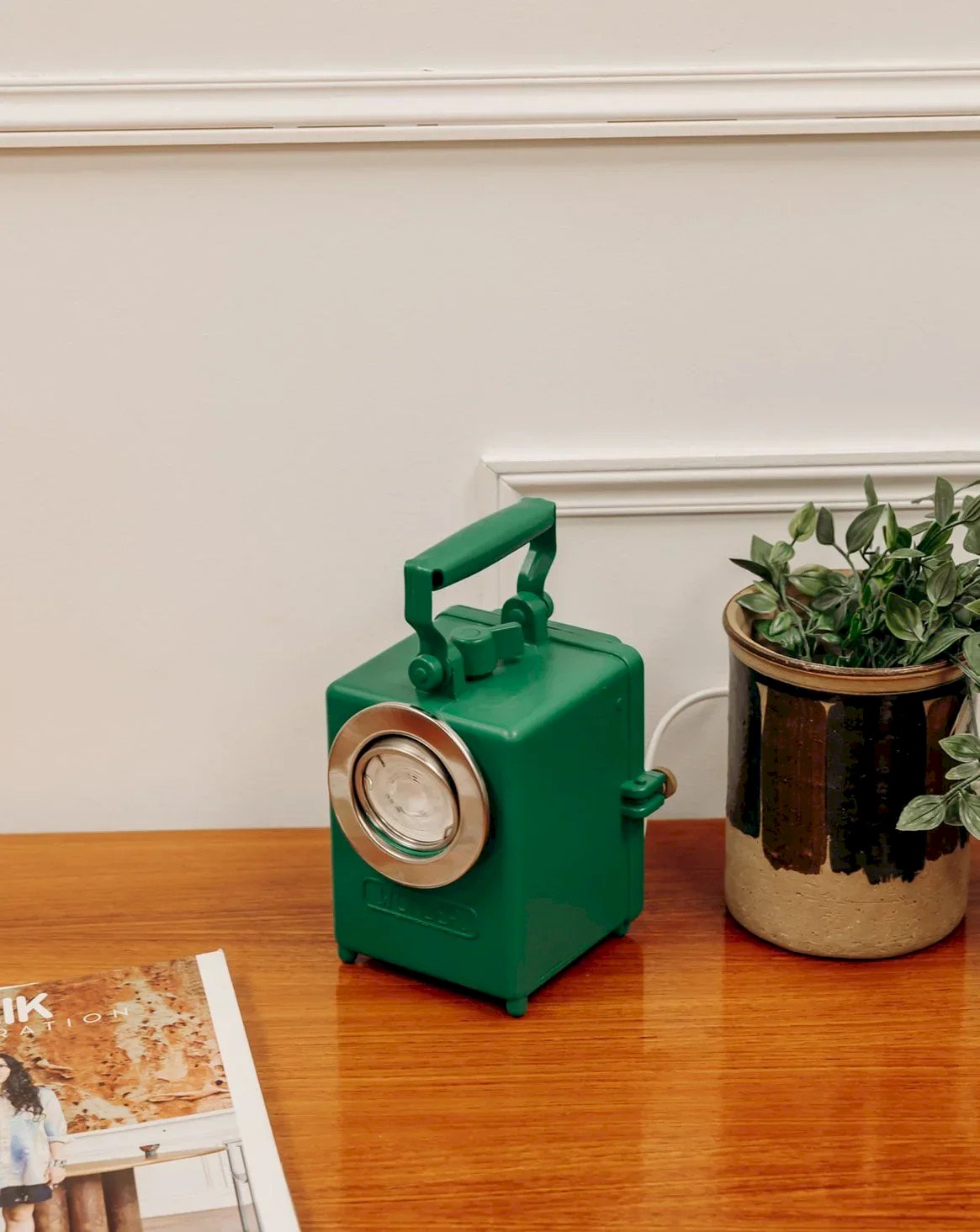 Discover the Wonder lamp model Agral, a unique piece that blends history and modernity. An old flashlight used by individuals and the SNCF, its robustness makes it a characterful element for your interior. Recently restored, it has been sandblasted, cleaned, and painted with care, while incorporating an electrical system to create a warm atmosphere. Its elegant dark green color and vintage design will add a retro chic touch to your decoration. A true functional work of art not to be missed! Length: 12 cm Width: 17 cm Height: 17 cm Condition: Used item: An item that has been used. Item showing some superficial signs of wear, fully operational and functioning correctly. It may be a demonstration model or an item returned to the store after a short period of use. Any possible imperfections. Brand: Debongout Type: Vintage find Style: Contemporary Material: Metal Vintage: Yes