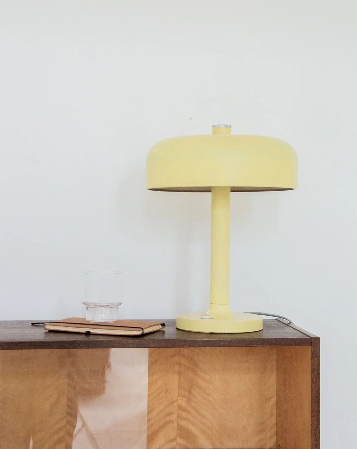 Add a vintage touch to your interior with this pale yellow lamp in a seventies style. Its dimensions make it a perfect choice to illuminate your space while adding character. Its retro design, subtle and warm, integrates harmoniously into various decors, creating a welcoming atmosphere. It will appeal to lovers of authentic decoration. Height: 42 cm Diameter: 31 cm Condition: Used item with some superficial signs of wear, fully operational and functioning correctly. It may be a display model or an item returned to the store after a short period of use, with potential imperfections. Brand: Debongout Type: Thrifted product Style: Contemporary Material: Metal Vintage: Yes
