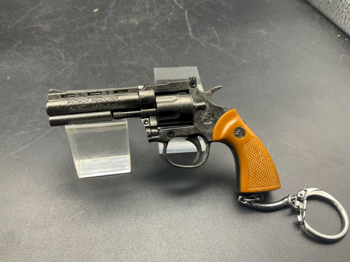 Keychain Colt Python 357 Magnum revolver firecracker Length: 10 cm Condition: Used: Item has been used. Check the seller's description for more details... Used: Item has been used. any potential imperfections. Type: Figurine Age range: 17 years and older Hero: Action Joe Packaging: None Material: metal Licensed Product: weapon Theme: H.M. Armed Forces