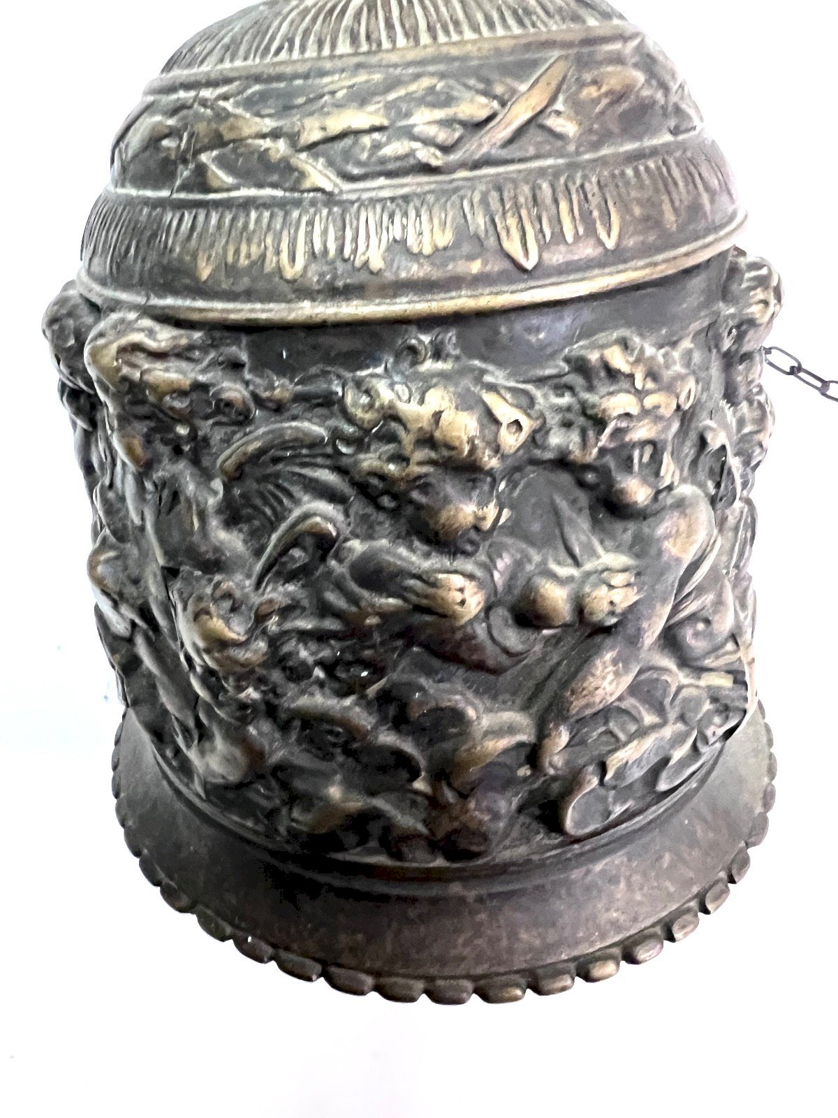 Large 19th Century Bronze Wall Bell – Relief Decoration of Cherubs – Patina