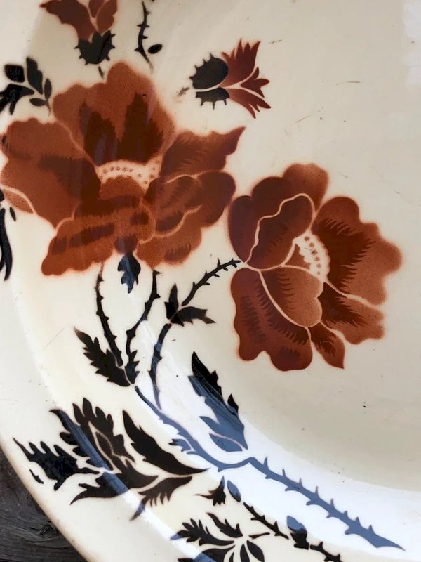 Antique Large Dish Gien Earthenware Floral Decor Antique Tableware