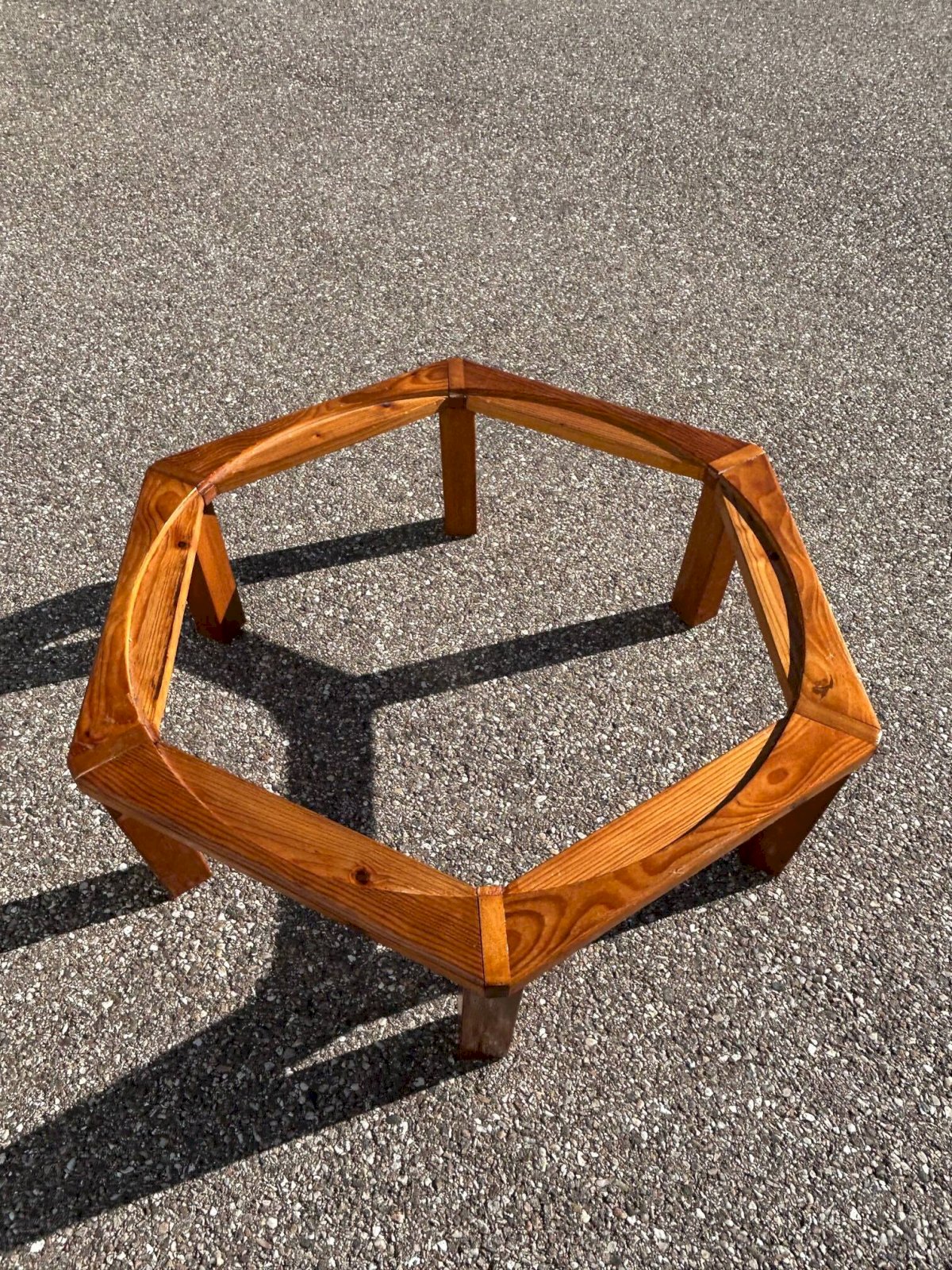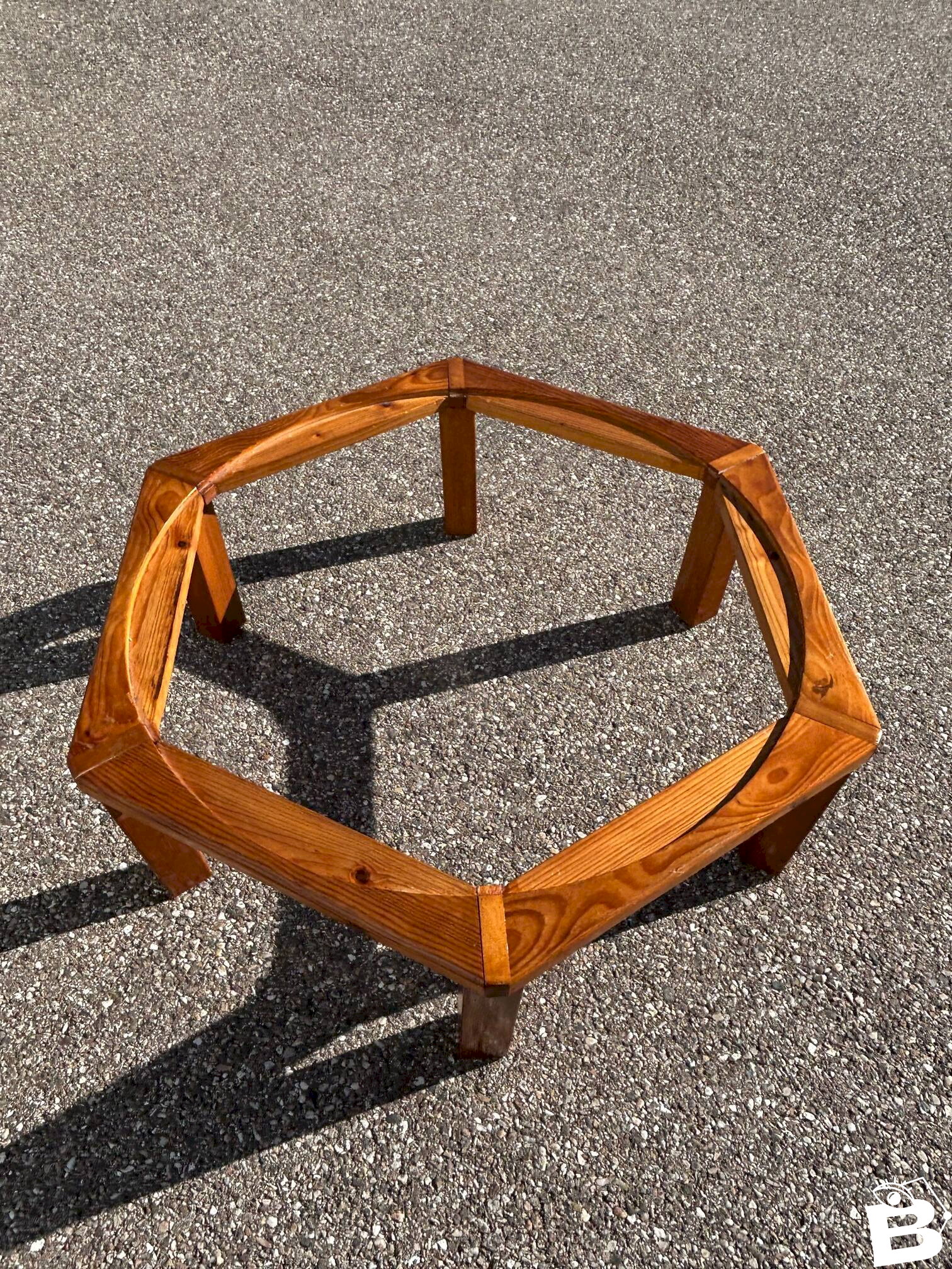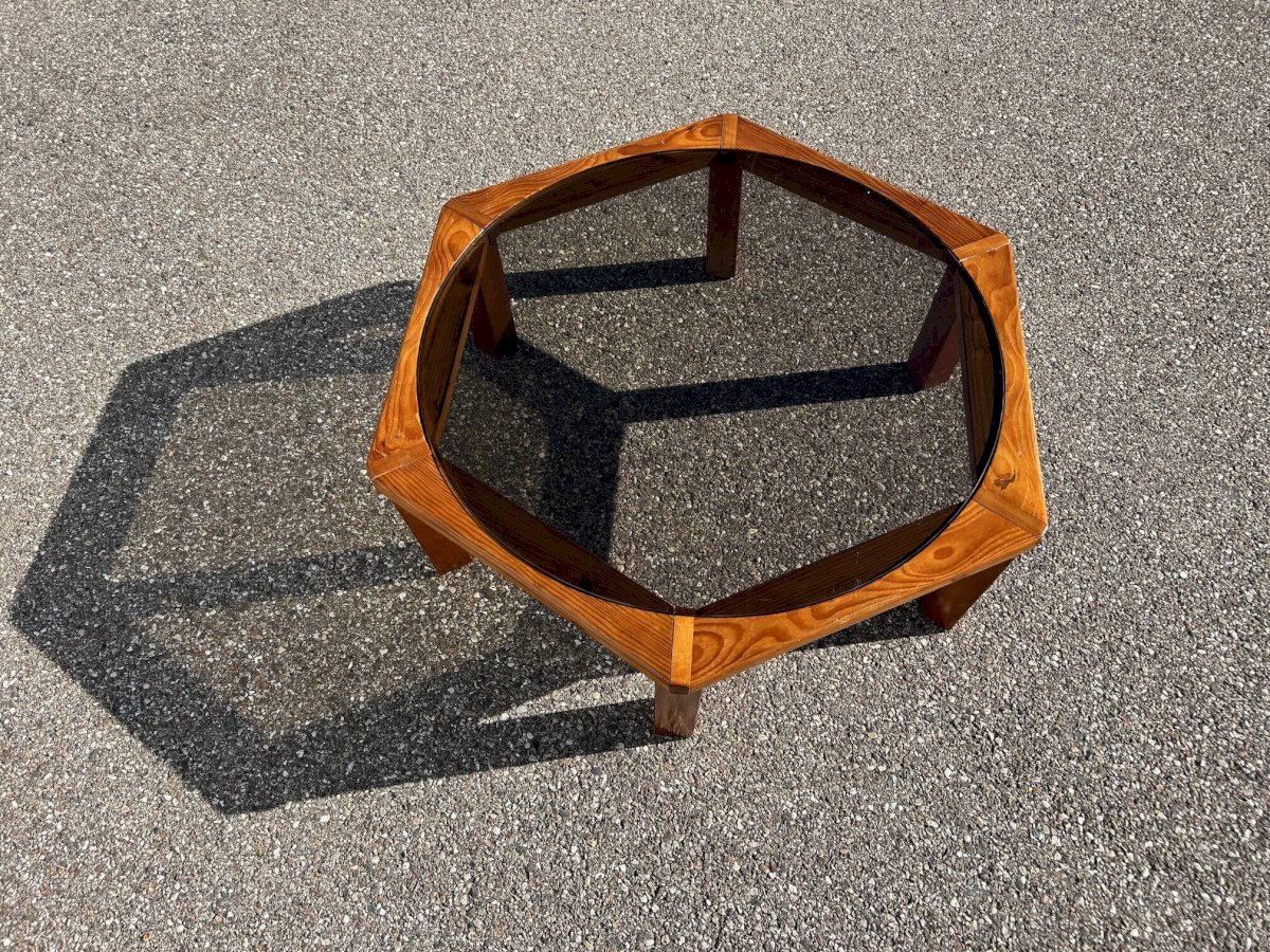 Large pine coffee table with its original smoked glass, 1970s. L: 100 W: 100 H: 31