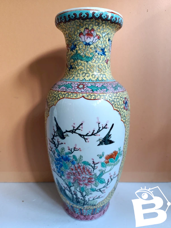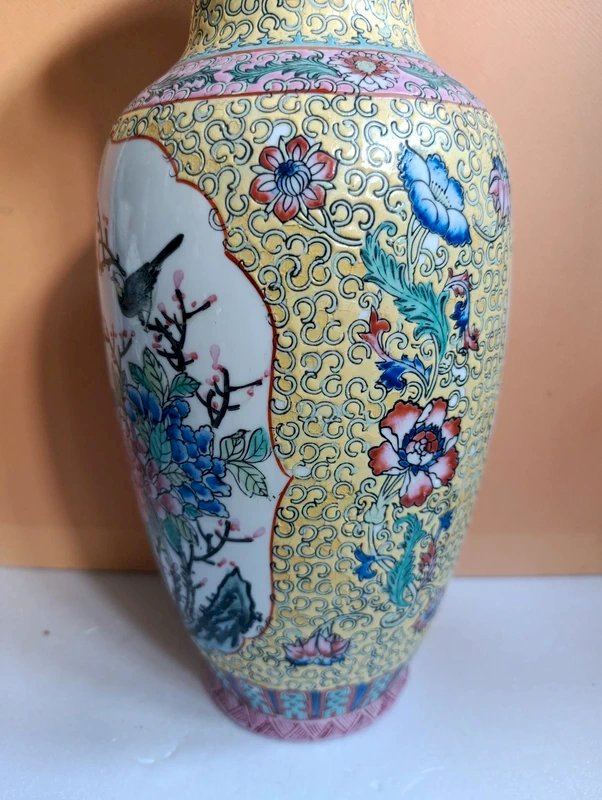 large Chinese porcelain vase with a birds and floral design in good condition, general good condition but with some missing glaze on the decoration (see photos) height 37cm...