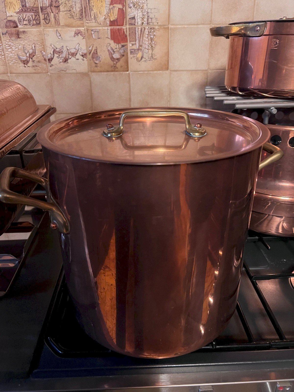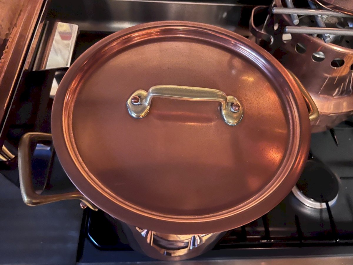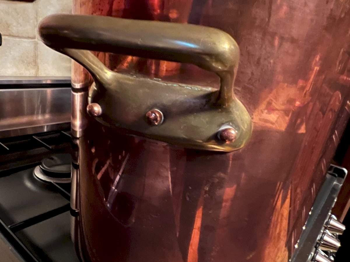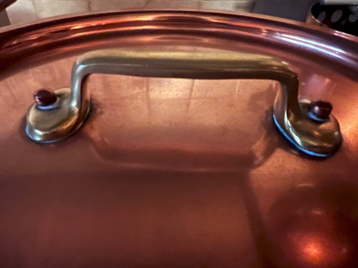 Beautiful copper pot with a good capacity, ideal for traditional cooking, large preparations, or as a strong decorative piece in a characterful kitchen. This model is appealing due to: its thick copper with a beautiful warm patina, its tinned interior, clean and healthy for culinary use, its securely riveted brass handles, its generous proportions, typical of professional kitchen equipment or large houses. Perfect for pot-au-feu, broths, jams, or to complement a copper cookware set. ? Dimensions Diameter: 24.5 cm Height: 24 cm ? Very nice capacity. ? Condition Good general condition. Copper with natural patina and normal signs of use. Tinned interior showing signs of use, with no structural defects (see photos). Sturdy handles, stable base. ?️ Period 20th century Condition: Used: Item that has been used. Item showing some superficial signs of wear, ...Used: Item that has been used. Item showing some superficial signs of wear, fully operational and functioning correctly. It may be a demonstration model or an item returned to the store after a short period of use. any possible imperfections. Color: copper Type: pot Country of origin: France Material: Copper Height: 24cm