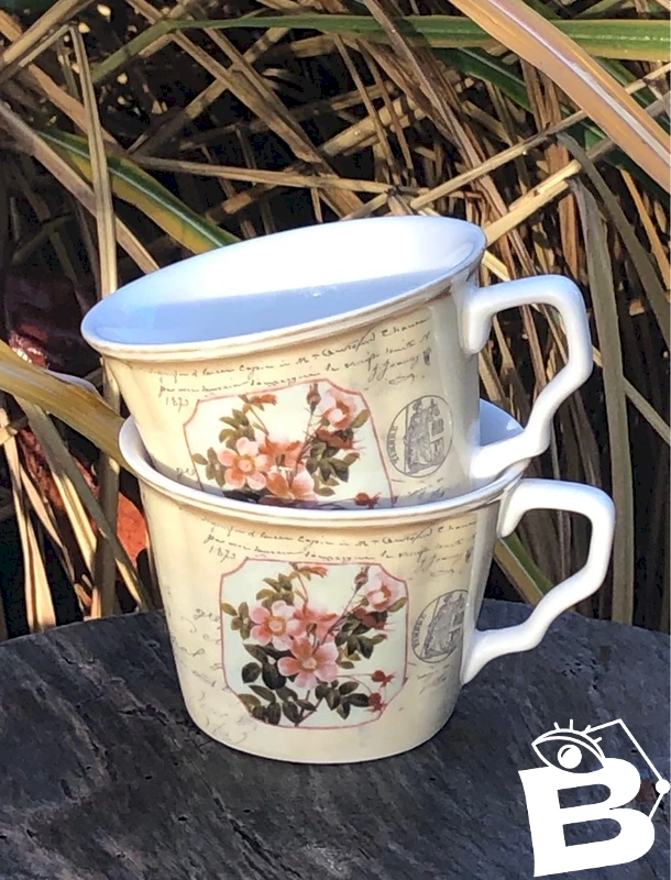 2 large flower pattern shabby style cups in excellent condition Height 8 cm Diameter 11 cm