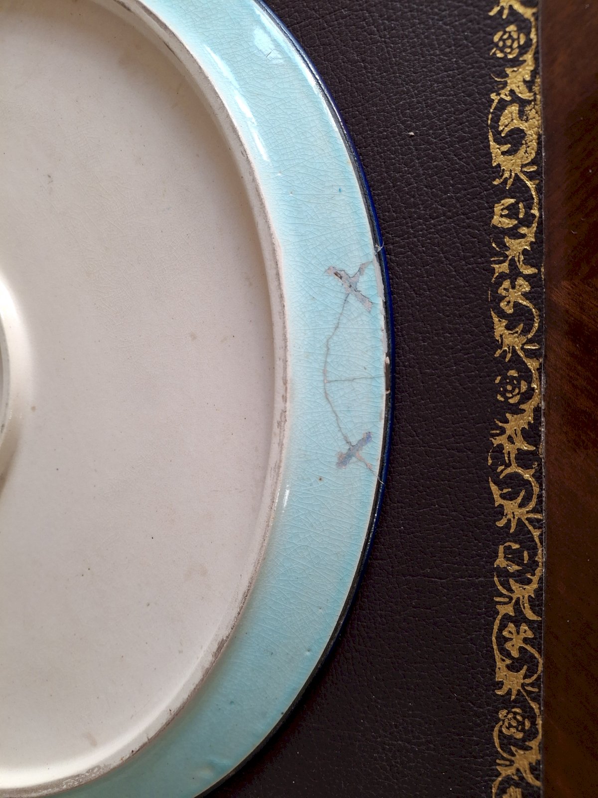 It is in excellent condition, except for a repair that I have photographed from the front and back, see photos 4, 5, and 3. It's an old repair done correctly with staples, and it remains very discreet, see photos 1, 2, and 6.