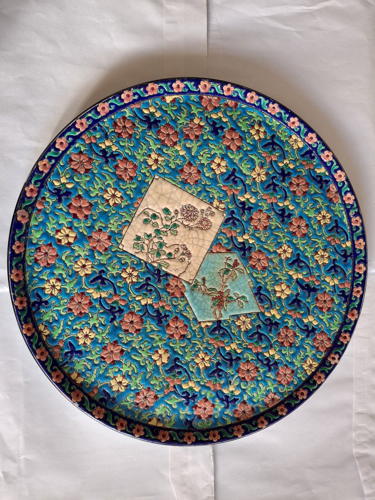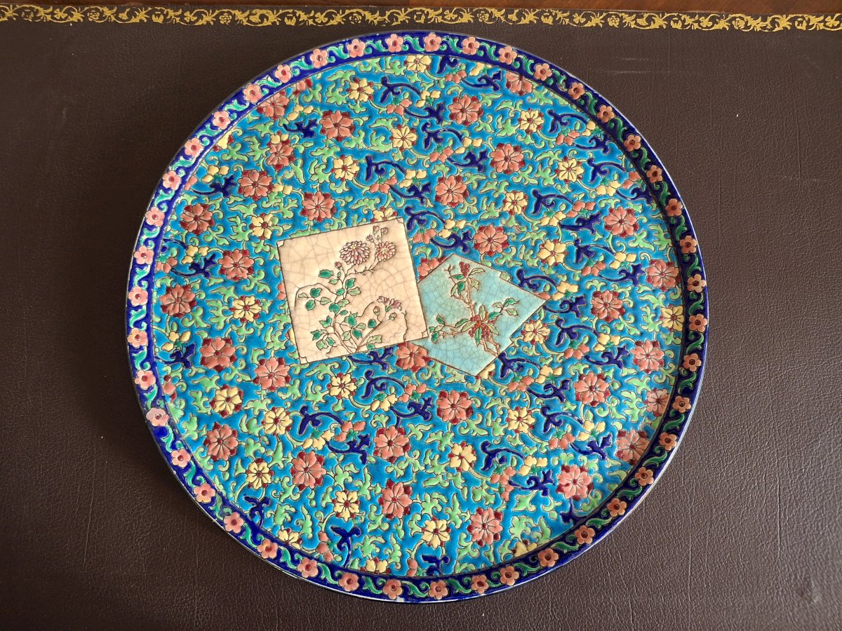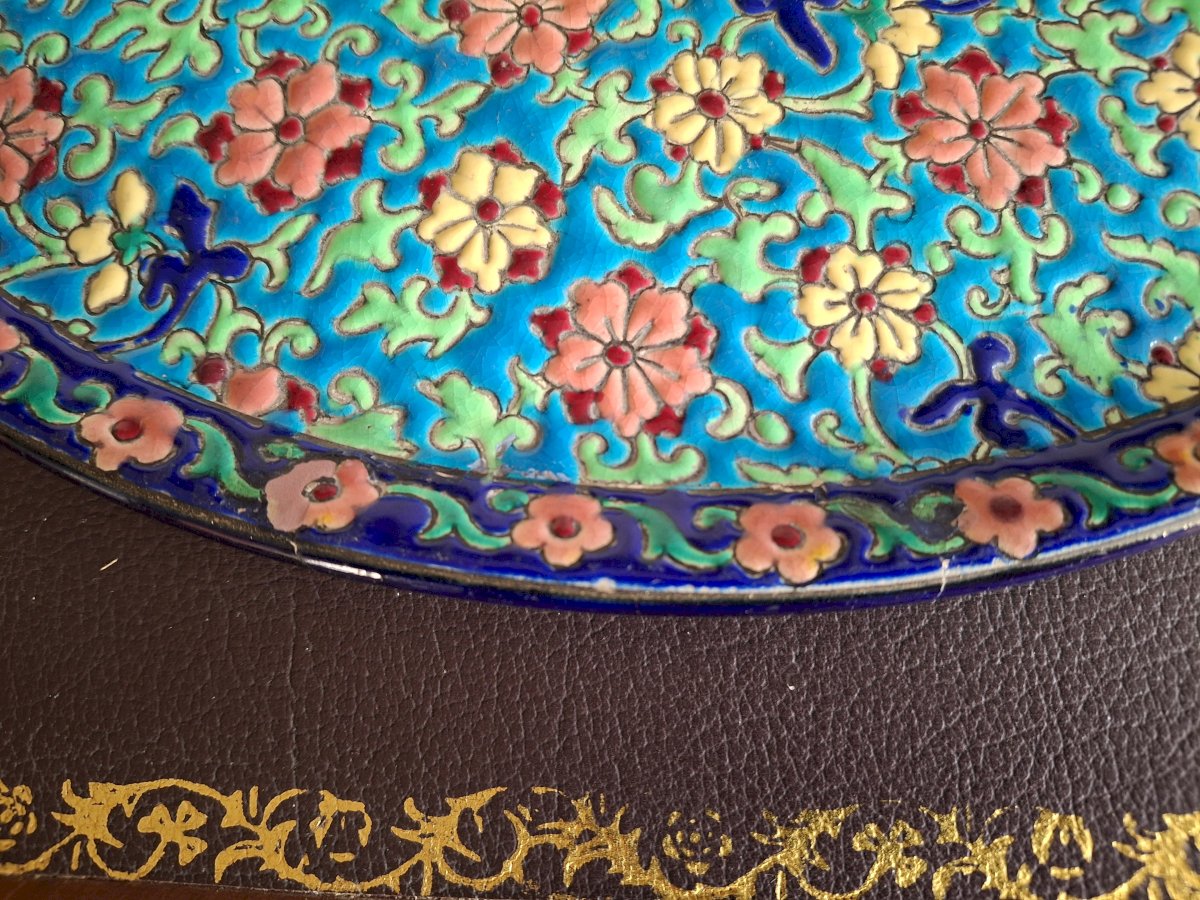 Large Longwy enamel plate, each piece in this series is a work of art.