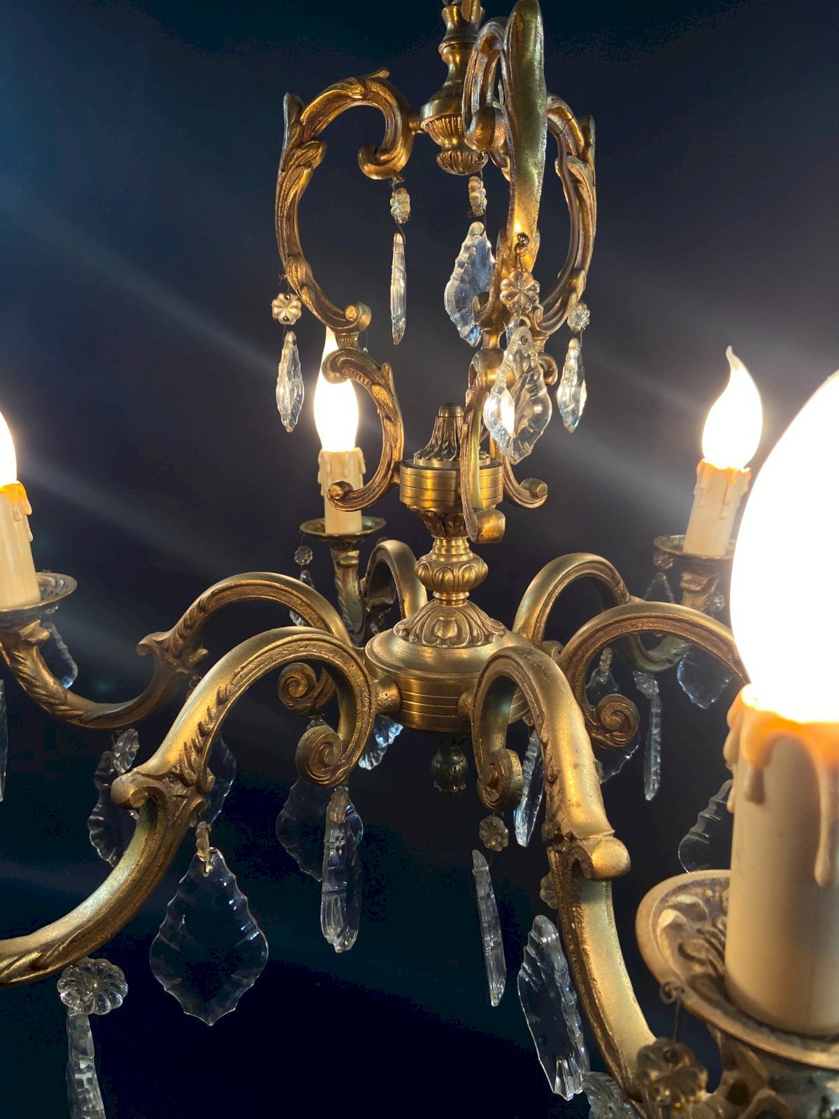 Large Louis XV-style bronze cage chandelier with crystal pendant decorations, 6 lights Max dimensions: Height 64 x span 57.5 cm Weight: approximately 6800 grams Very good condition Bulbs not included Ultra-secure shipping worldwide - Order pick-up available by appointment, 7 rue Notre-Dame 18000 Bourges. - Possibility of grouping within the same package: please contact me in advance so I can calculate your optimized shipping costs. - Orders are delivered to the foot of your home - Dimensions are always specified: no disputes will be accepted if the furniture does not fit in your stairway or if your ceiling is too low... for example. - Specific delivery rates apply for islands: Corsica, Sardinia, Sicily, Balearic Islands......... - Delivery times are generally very short for all major cities - These may be extended for extremely remote destinations that are particularly poorly served: please feel free to contact me beforehand. Type: Suspension, Chandelier Period: 19th century and earlier Country of origin: France Sub-type: Indoor Material: Bronze Style: Louis XV, Neoclassical Type of lighting: Standard