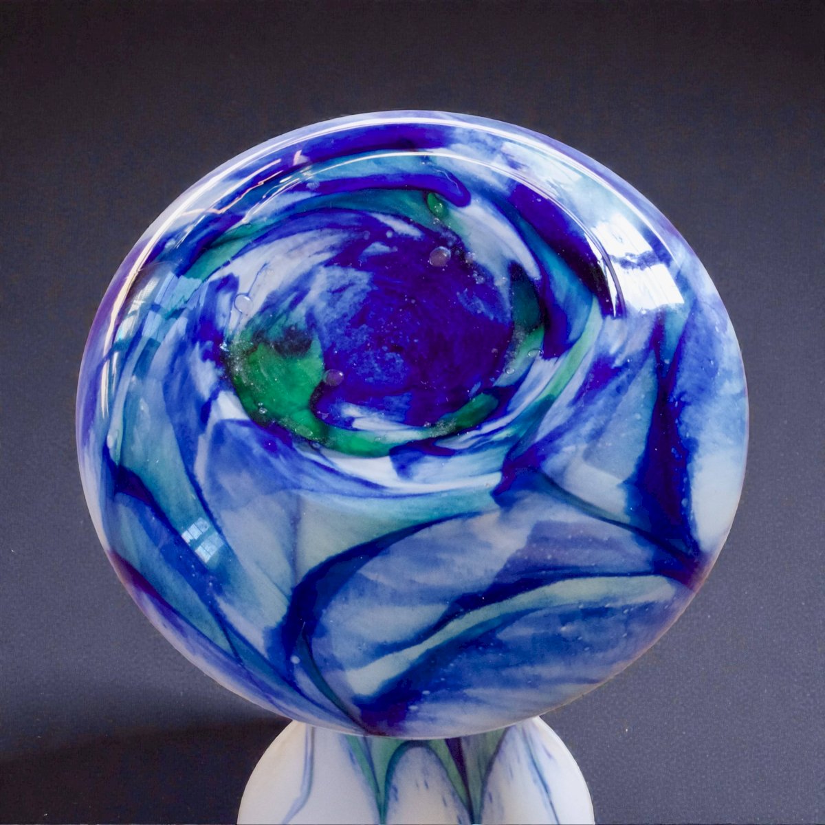 Wavy patterns creating a depth movement that beautifully captures natural light. Elegant and harmonious silhouette. Generous rounded base.